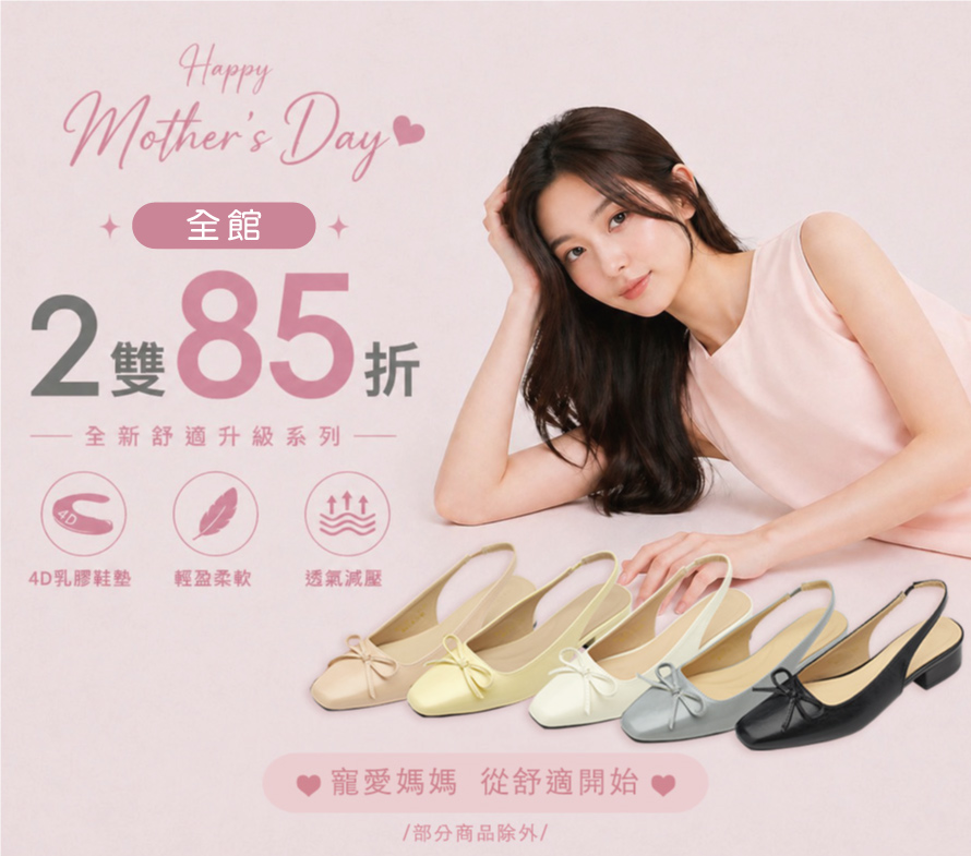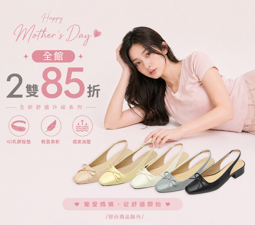 俏皮少女素面花釦芭蕾舞瑪莉珍鞋 米白