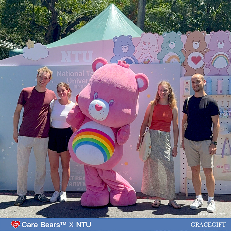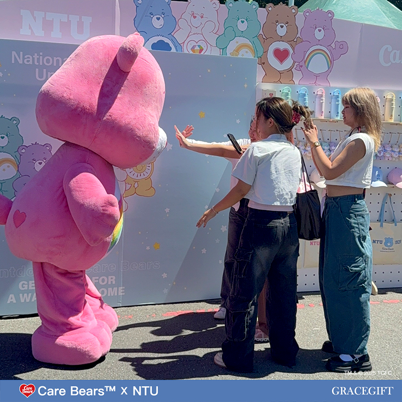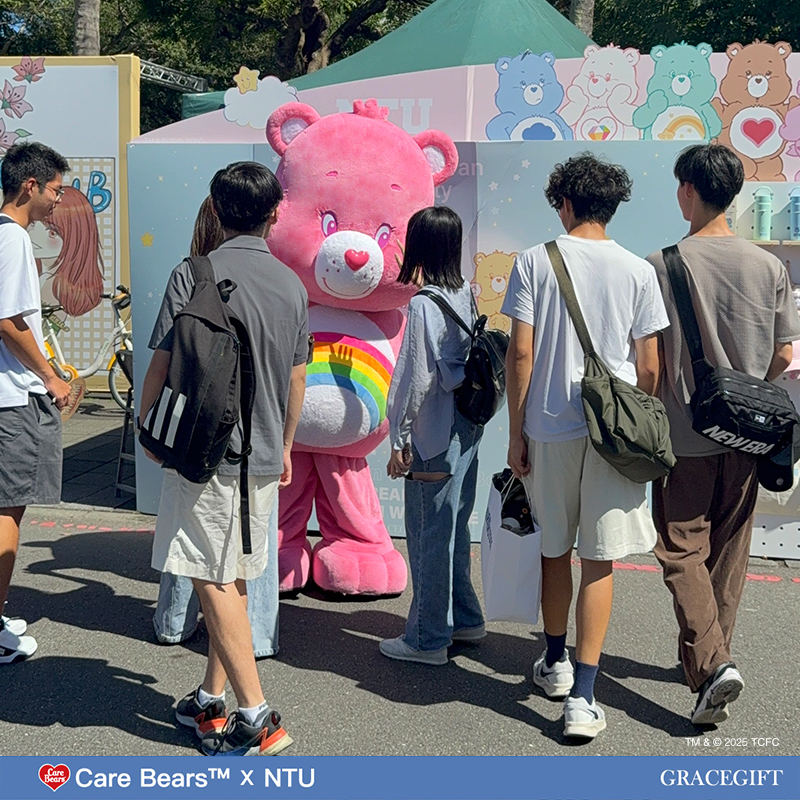 Care Bears × NTU 迎新限定系列在台大每年入學時社團聯展當日同步亮相,繽紛攤位一登場就吸引滿滿人潮。新生、學長姐與校友都熱情參與,現場也加入Care Bears人氣大玩偶到場同樂,成為今年度校園迎新最受矚目的佳話之一。