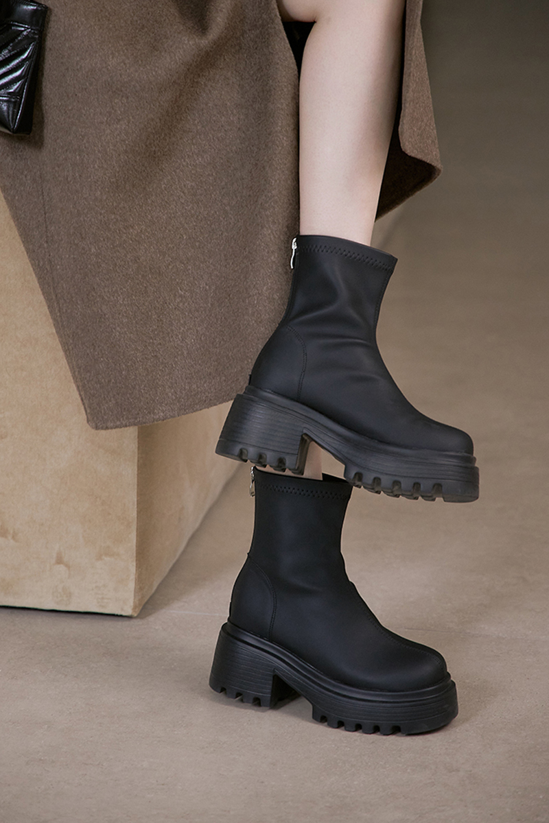 柔軟彈力靴筒貼合腿型,厚底自然增高,顯瘦效果極佳。輕盈材質讓長時間行走依然舒適。