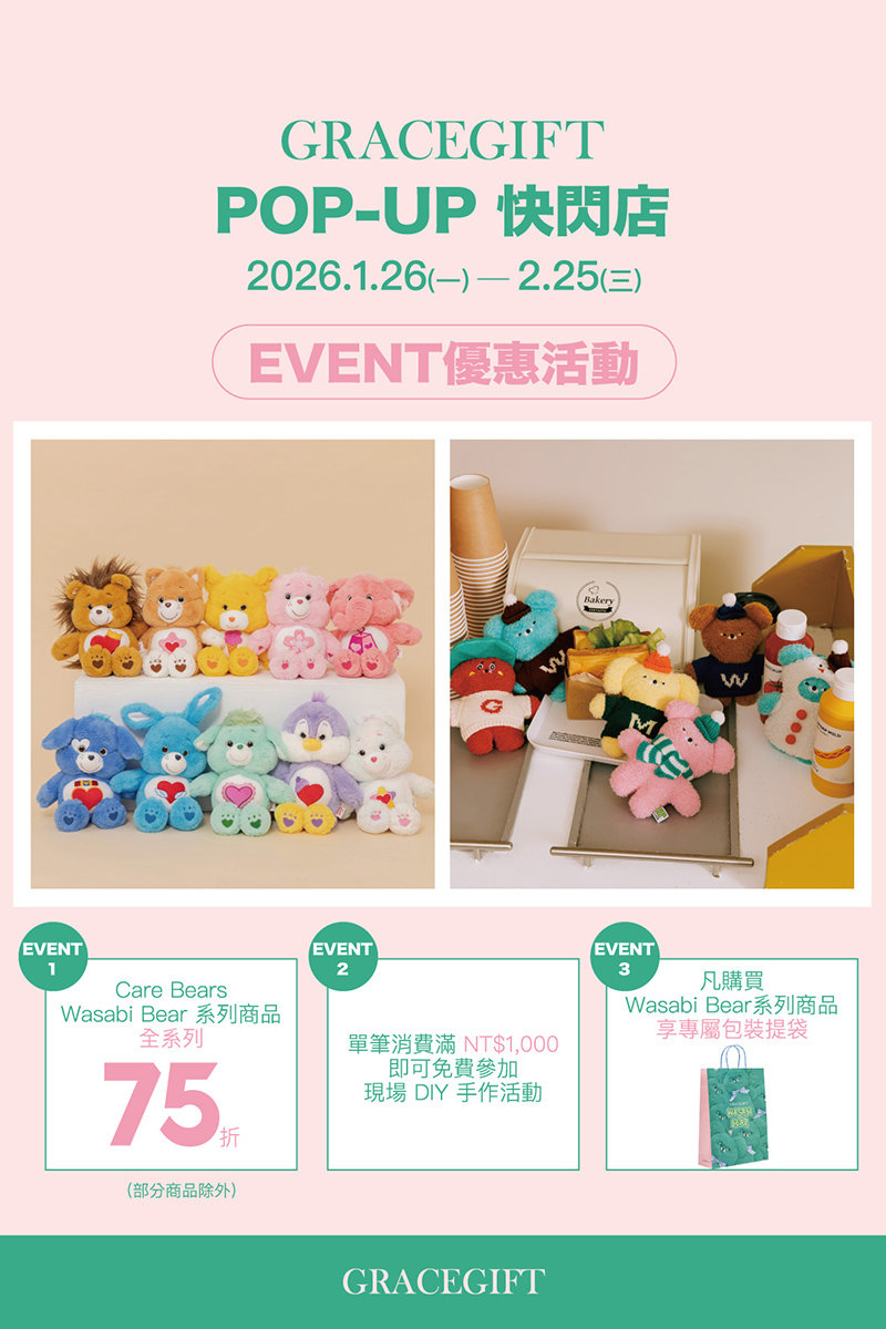 請鎖定Gracegift 官方社群平台 隨時更新活動最新消息 →