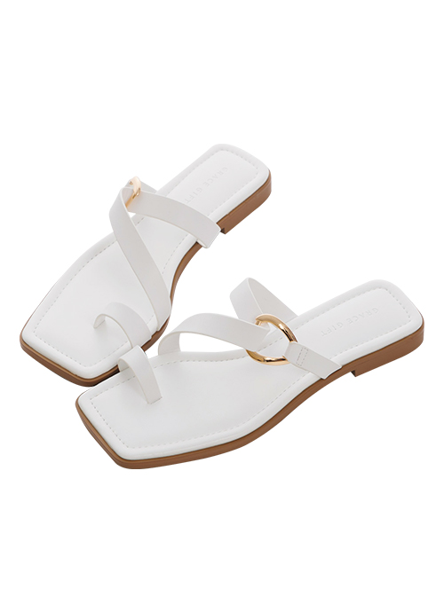 V字帶套趾平底拖鞋 白