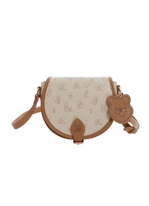 迪士尼小熊維尼95週年款滿版印花馬鞍包 杏