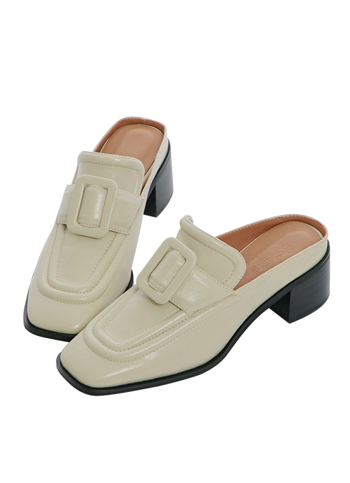 薛妞妞聯名-復古方釦中跟穆勒鞋 米白