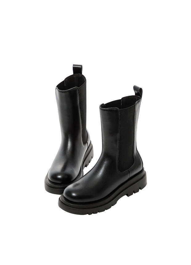 圓頭厚底中筒切爾西靴 黑