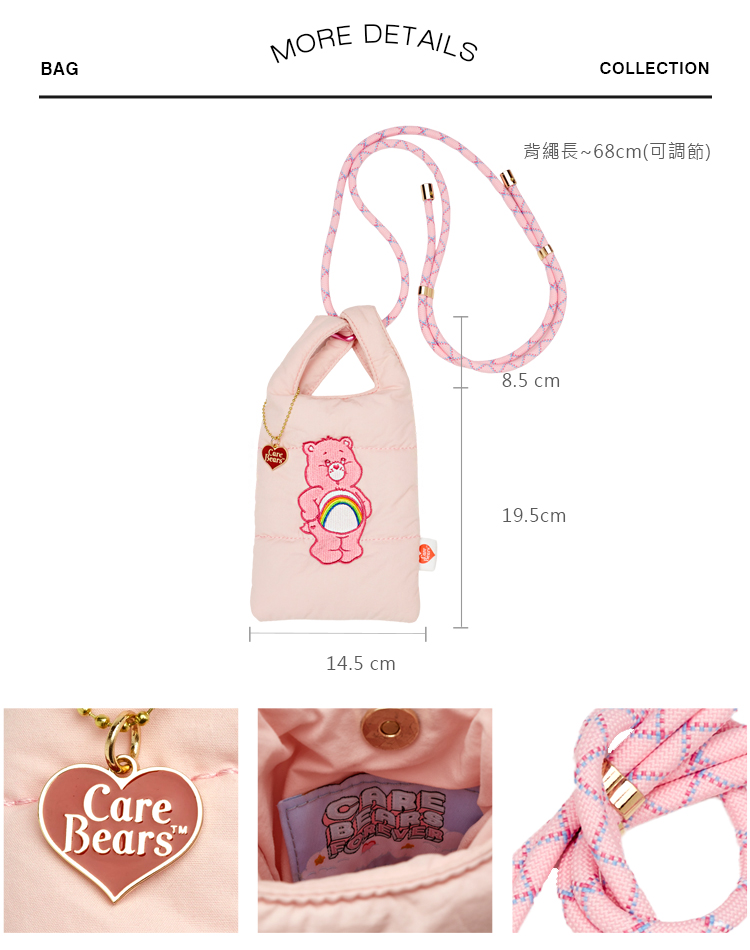 Care Bears-分享小熊澎澎手機包(附掛繩+LOGO手機夾片) 杏