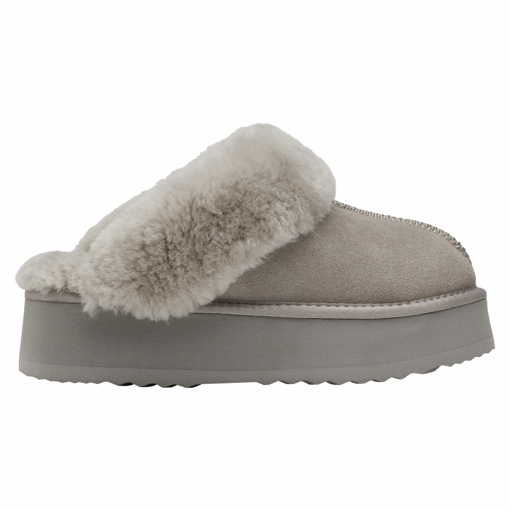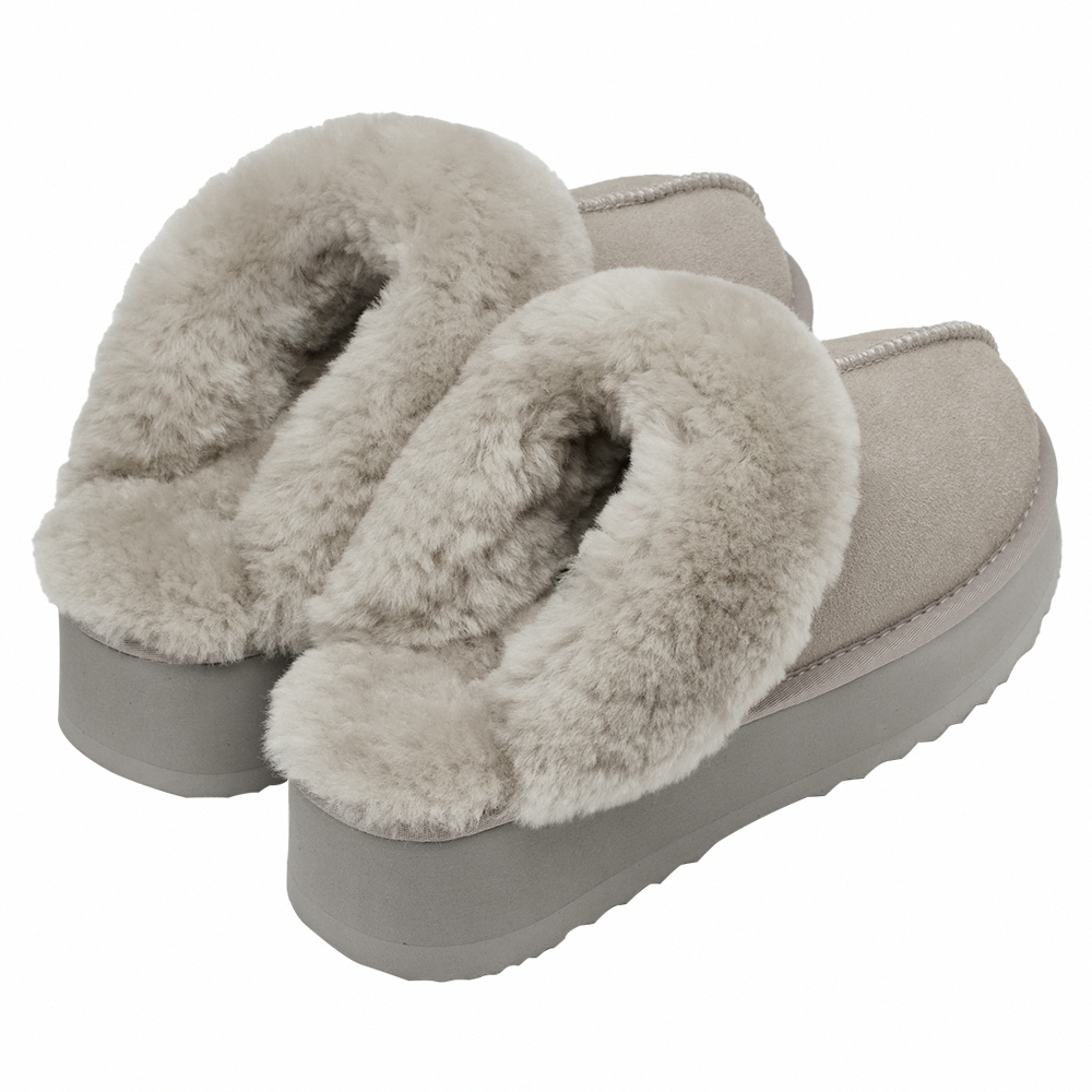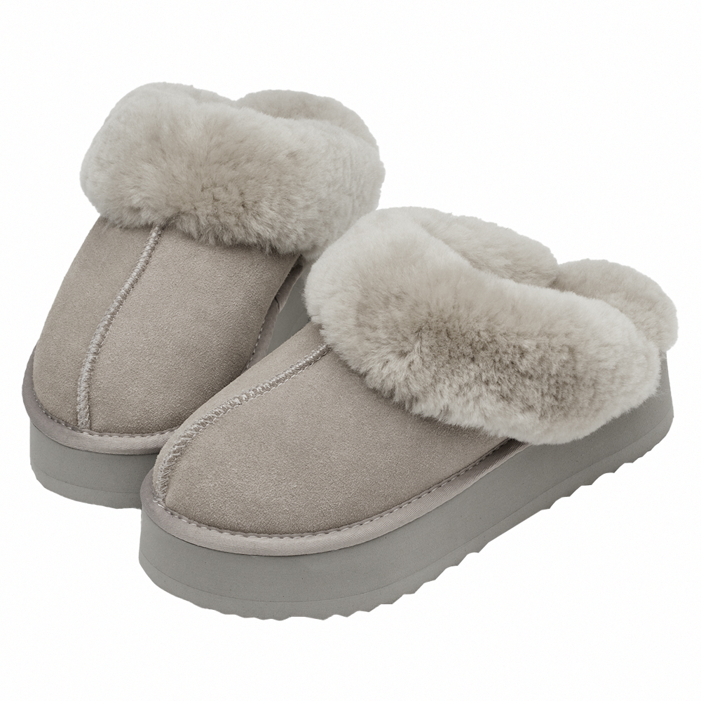 首頁 > 女鞋 > 靴子全系列 > 真皮靴 >牛麂皮羊毛厚底雪地拖鞋 灰