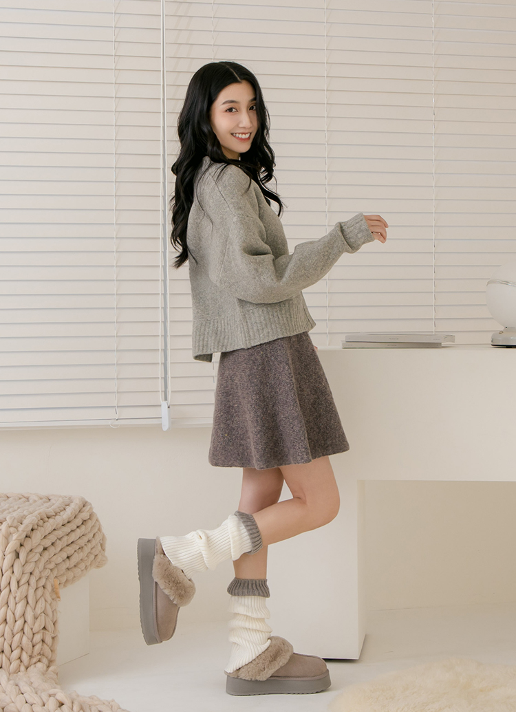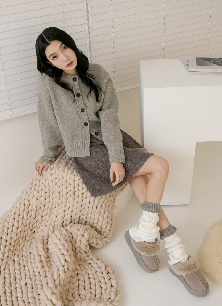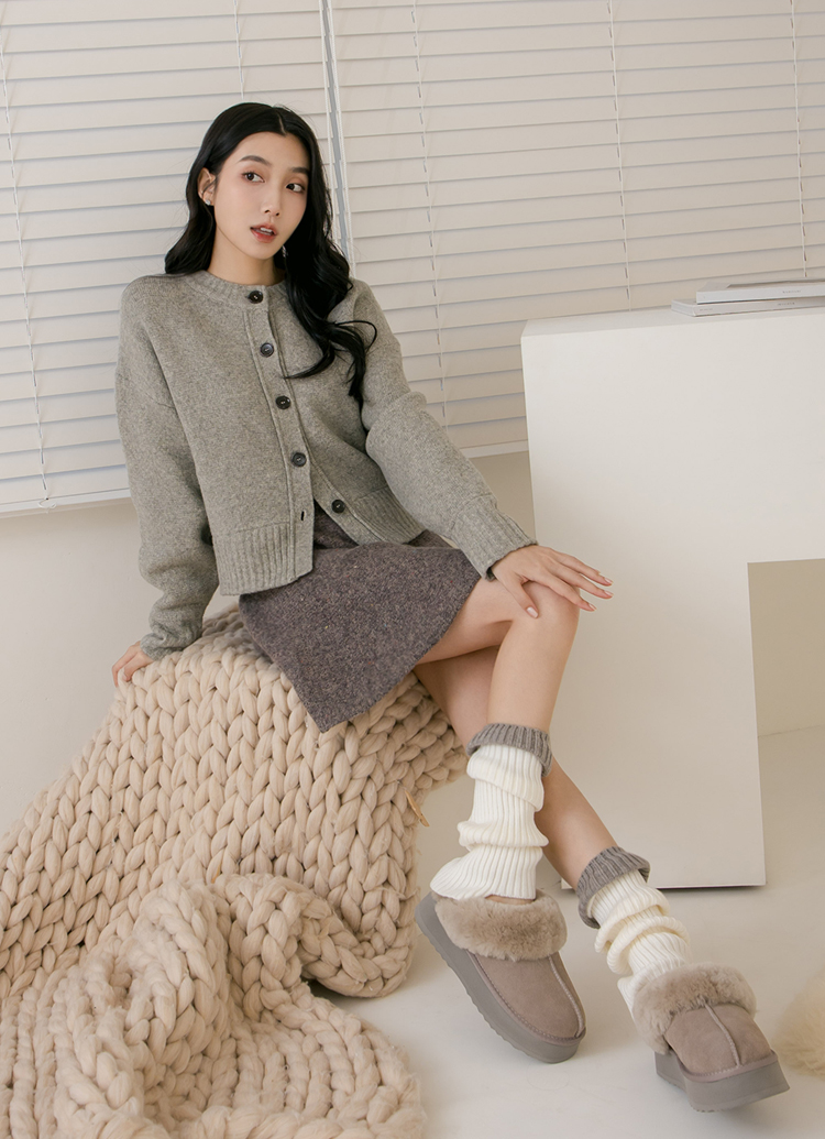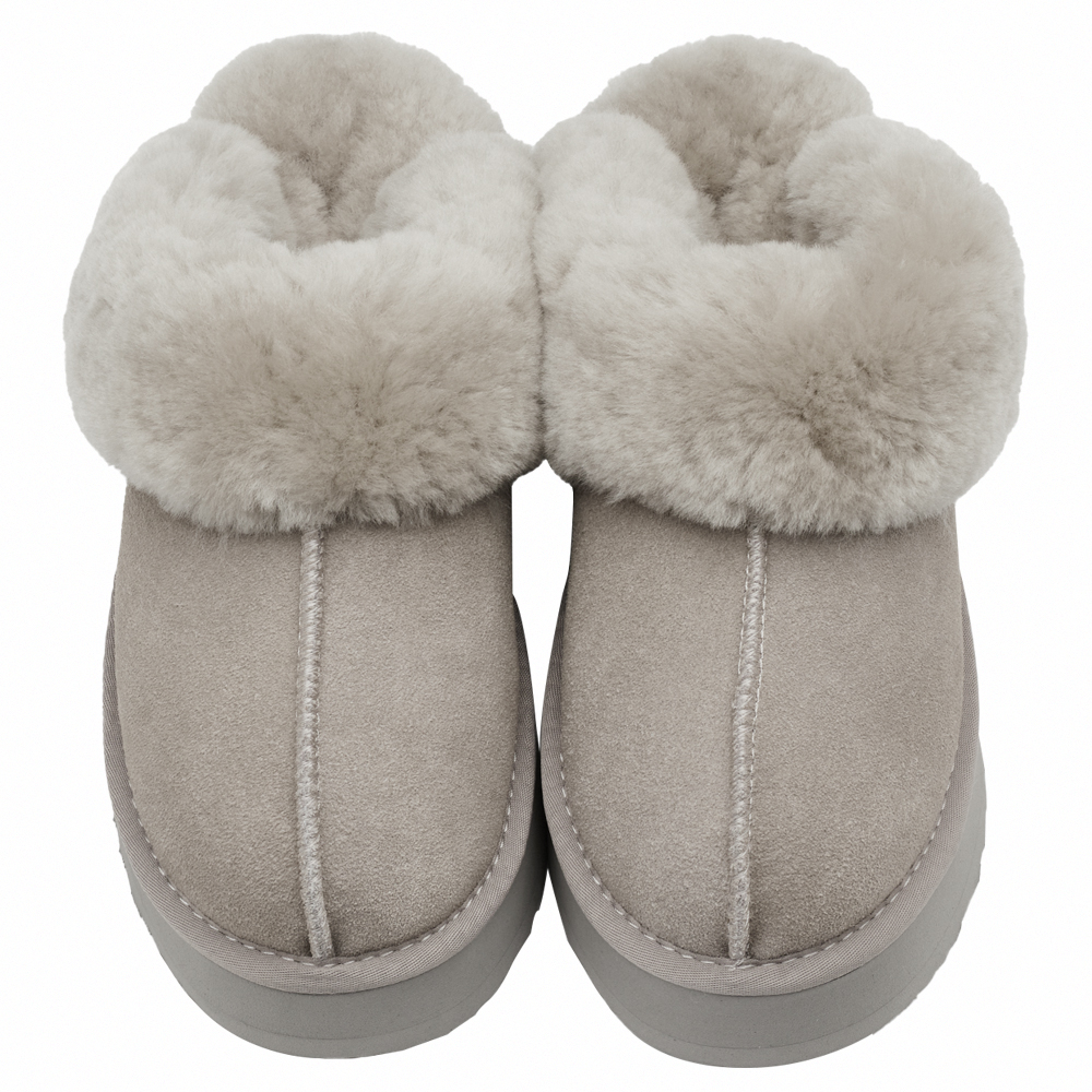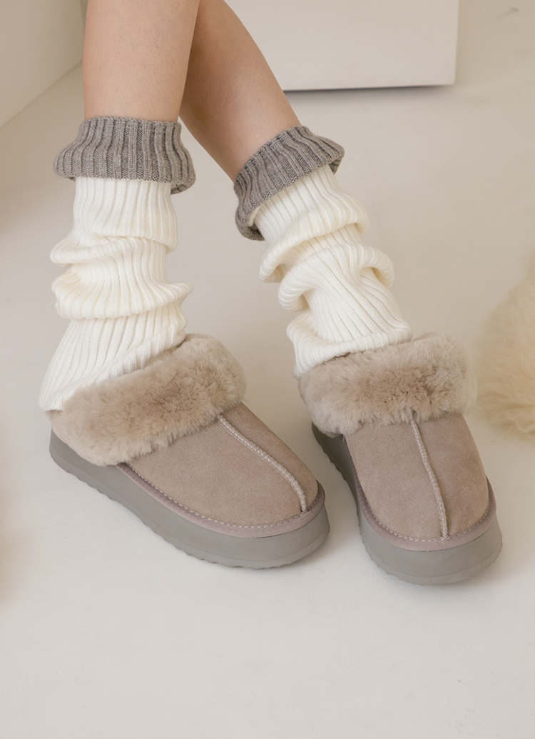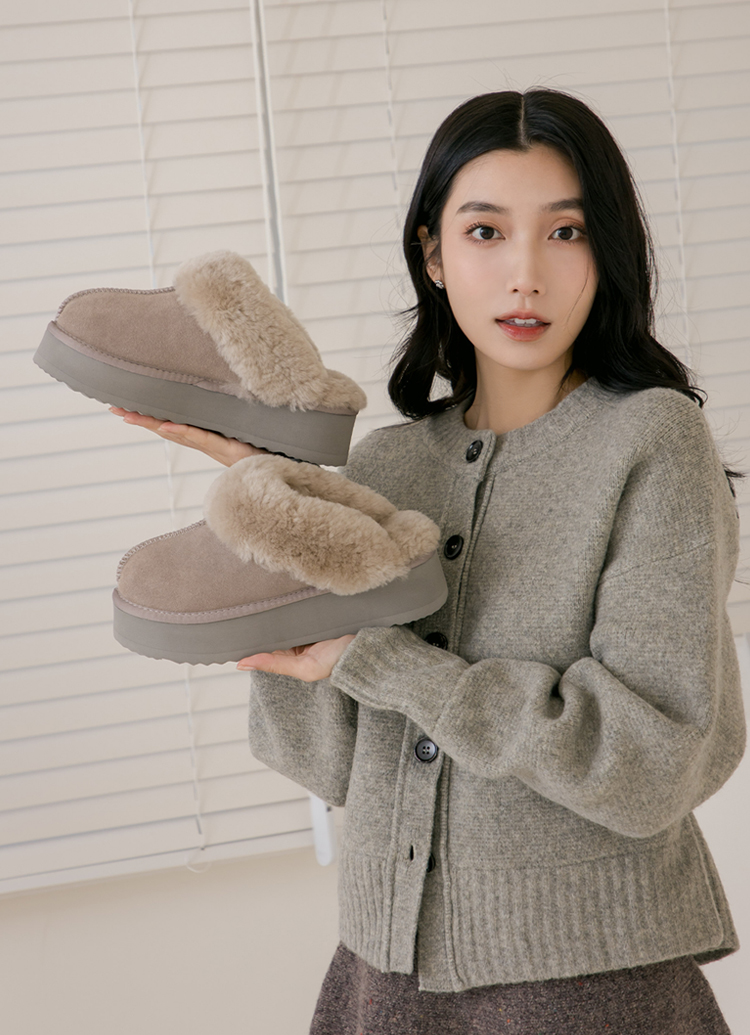 牛麂皮羊毛厚底雪地拖鞋 灰
