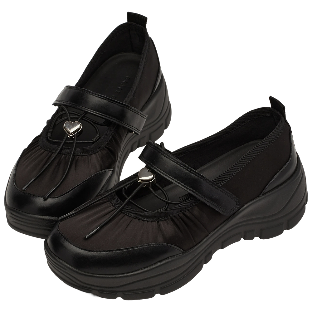 韓系學院繫繩魔鬼氈輕量芭蕾運動鞋 黑