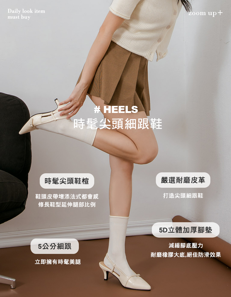 5CM如貓步優雅的細跟設計,輕鬆營造高挑比例