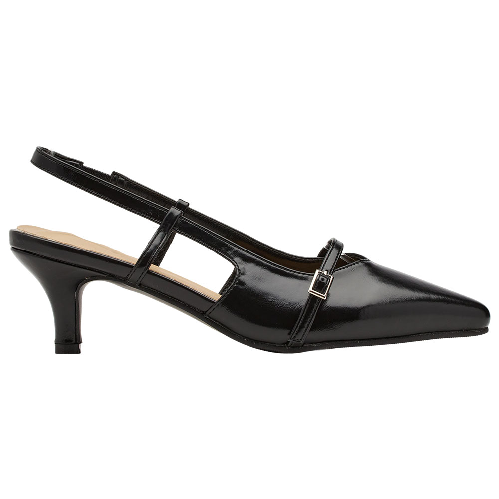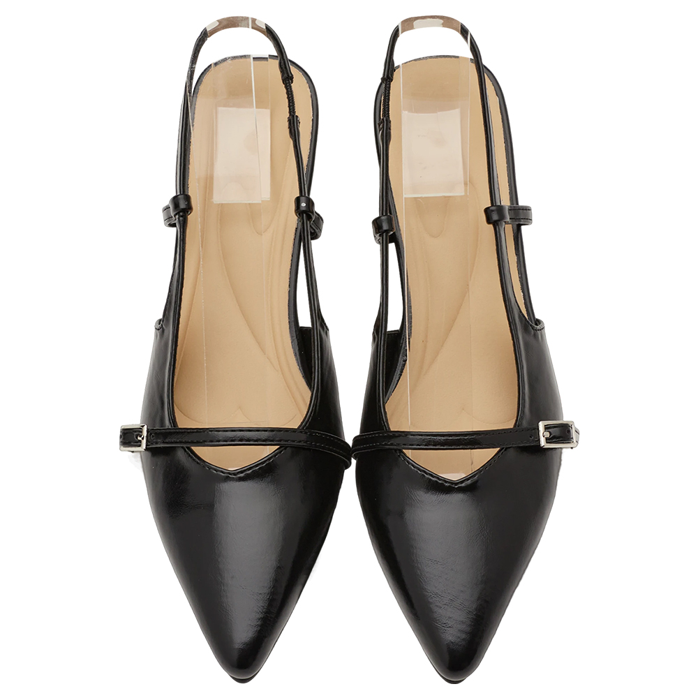 時髦尖頭皮革繫帶後空細跟鞋 黑