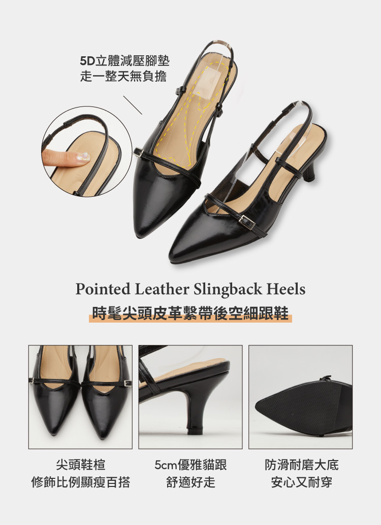 5CM如貓步優雅的細跟設計,輕鬆營造高挑比例