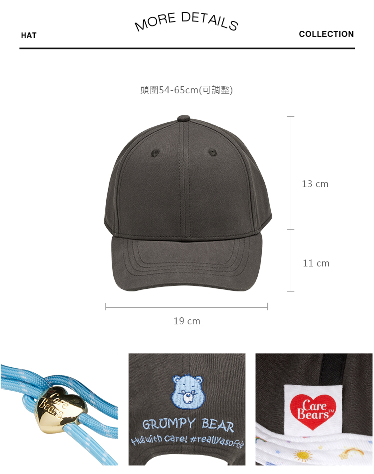 Care Bears-牢騷小熊拉繩調節電繡棒球帽 黑