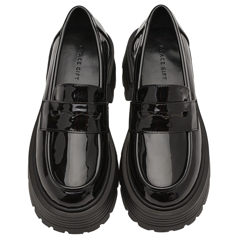 率性時髦輕量厚底便仕樂福鞋 黑漆