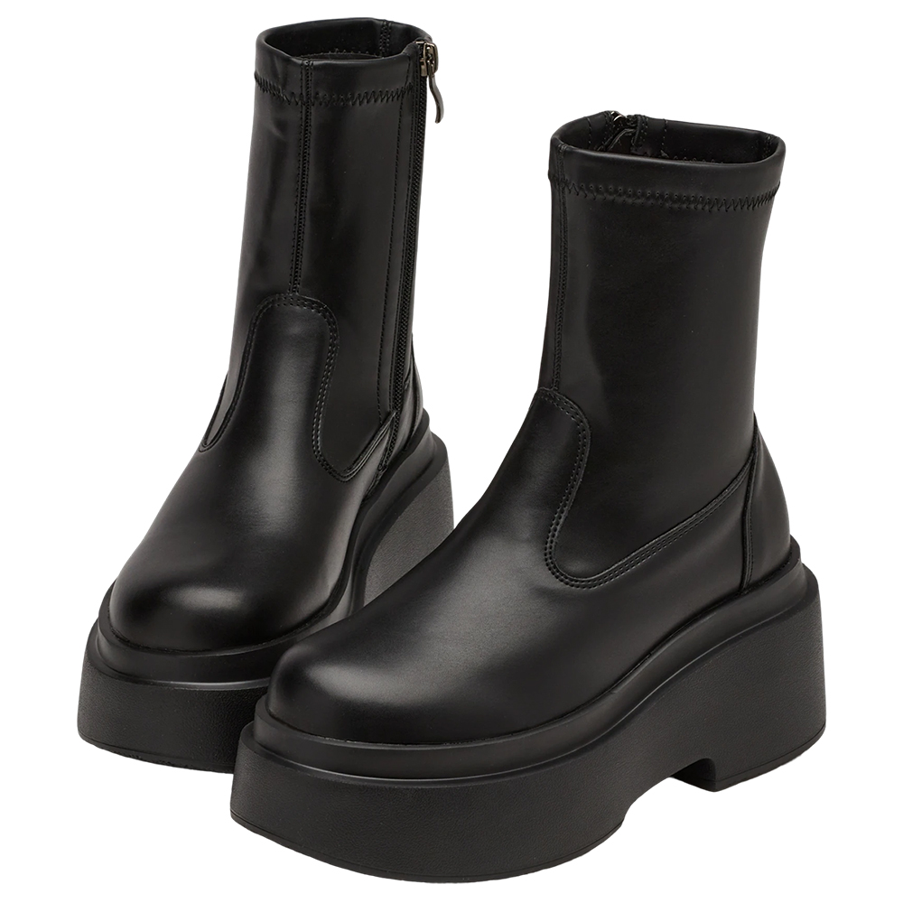 首頁 > 女鞋 > 靴子全系列 > 短靴/踝靴 >韓團指標輕量加厚鬆糕底短靴 黑