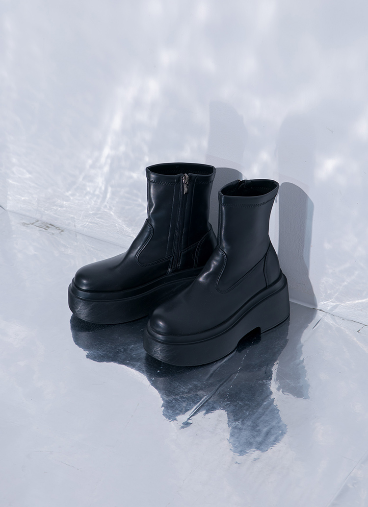 韓團指標輕量加厚鬆糕底短靴 黑