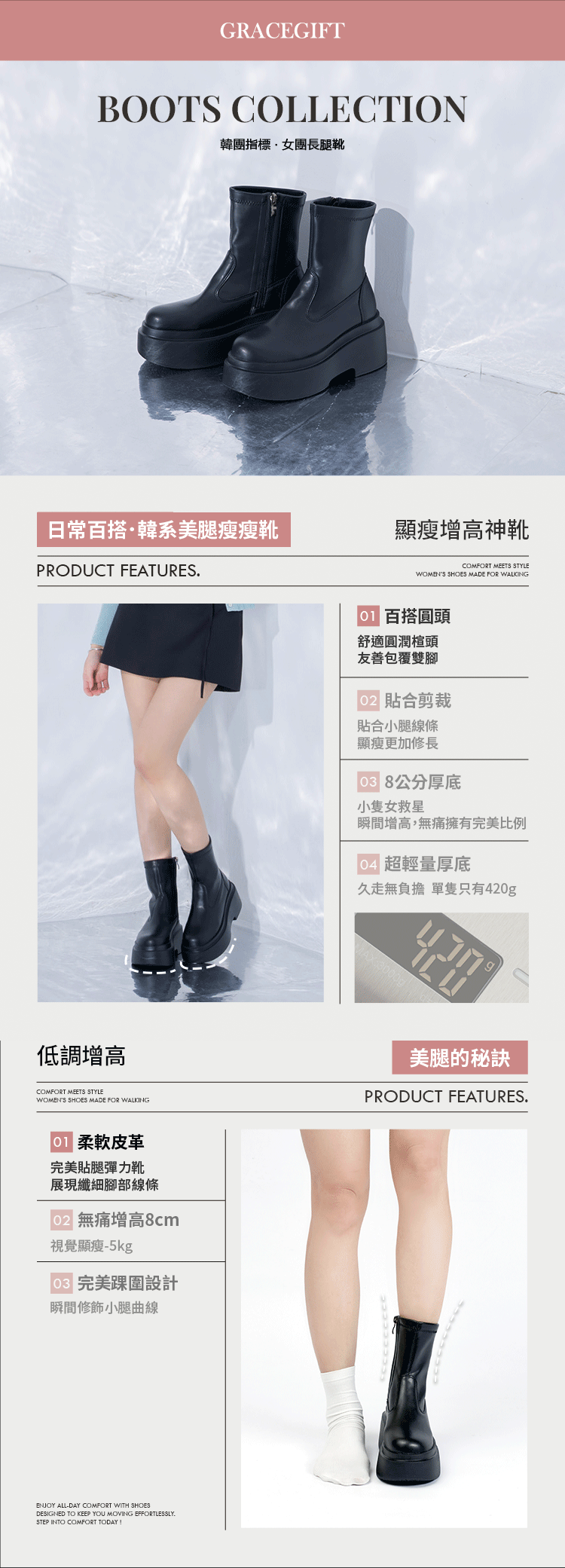8CM厚底瞬間拉長腿部,秒現自然顯瘦效果!