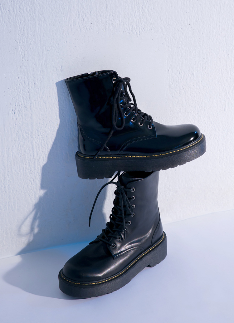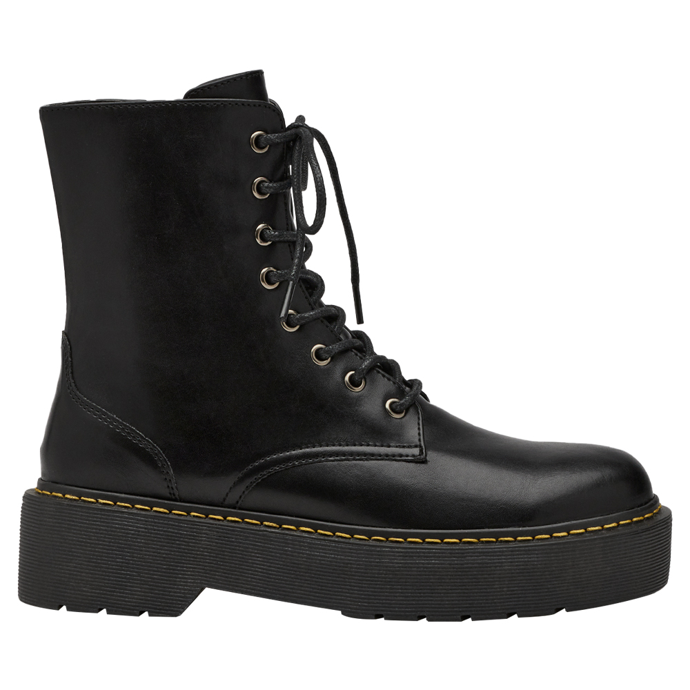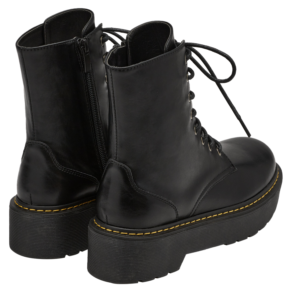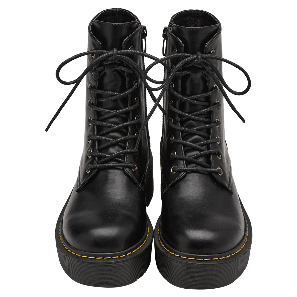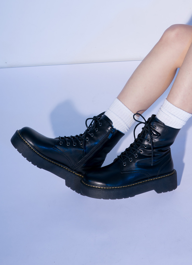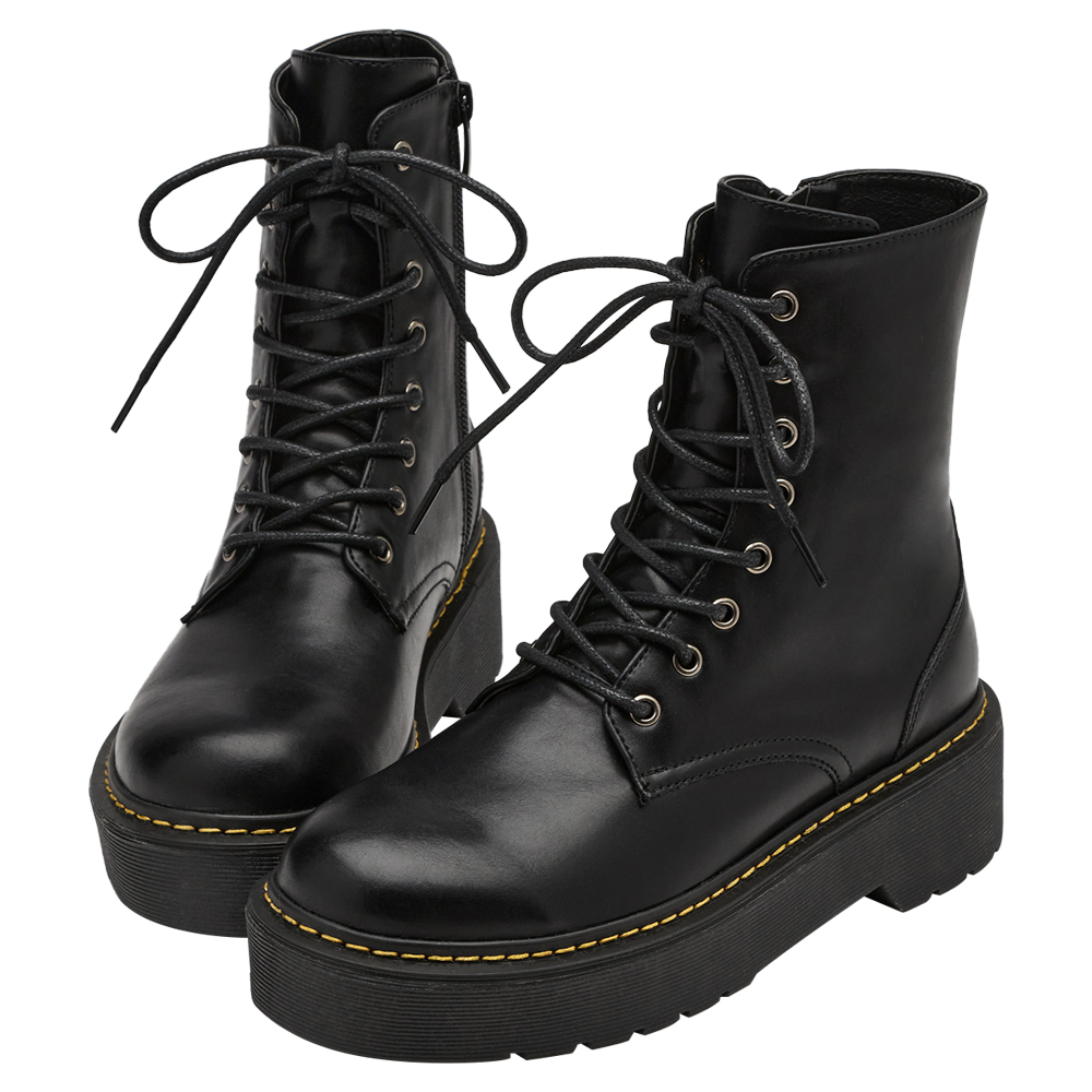 復刻經典圓頭綁帶厚底馬汀軍靴 黑