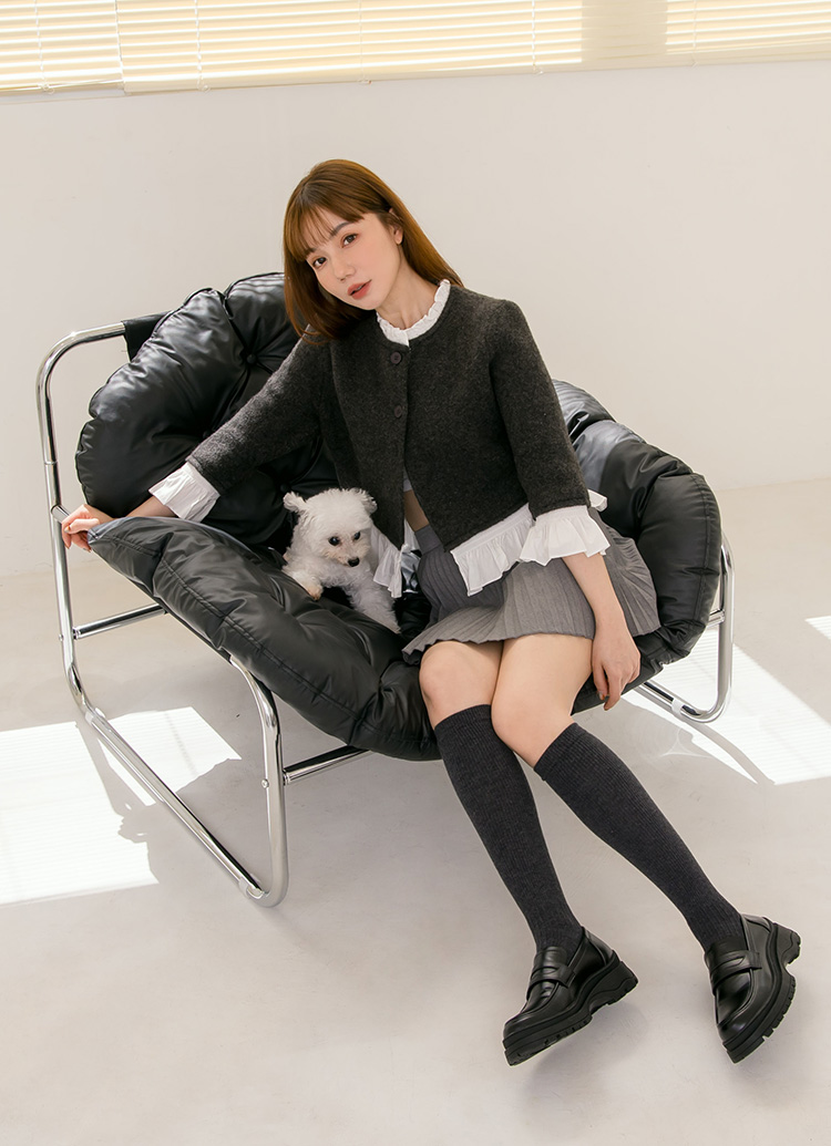 韓系學院羊毛彈性小腿長襪 深灰 韓系學院羊毛彈性小腿長襪 深灰