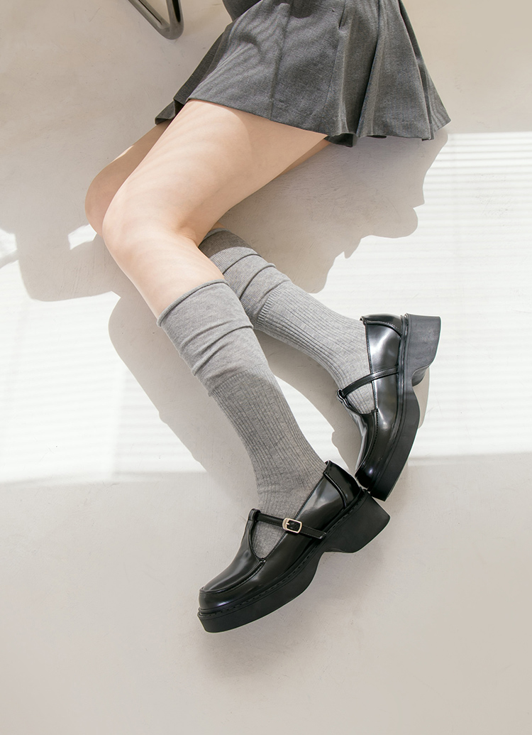 日常好感捲邊彈性小腿長襪 灰 日常好感捲邊彈性小腿長襪 灰