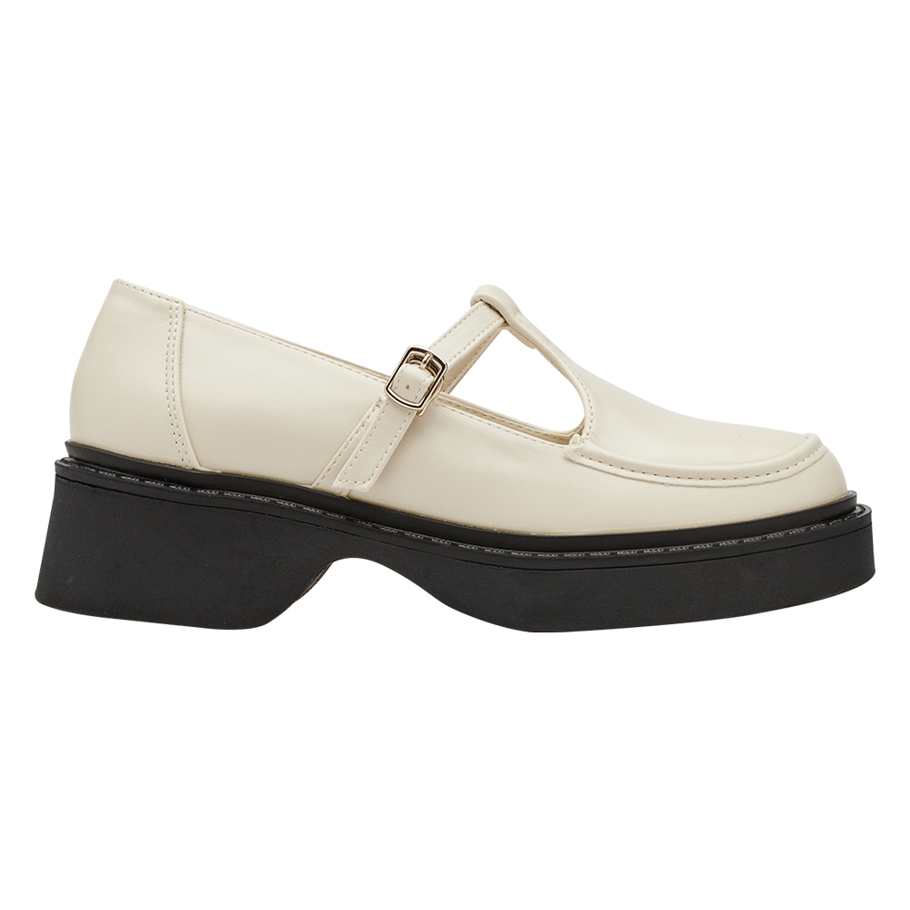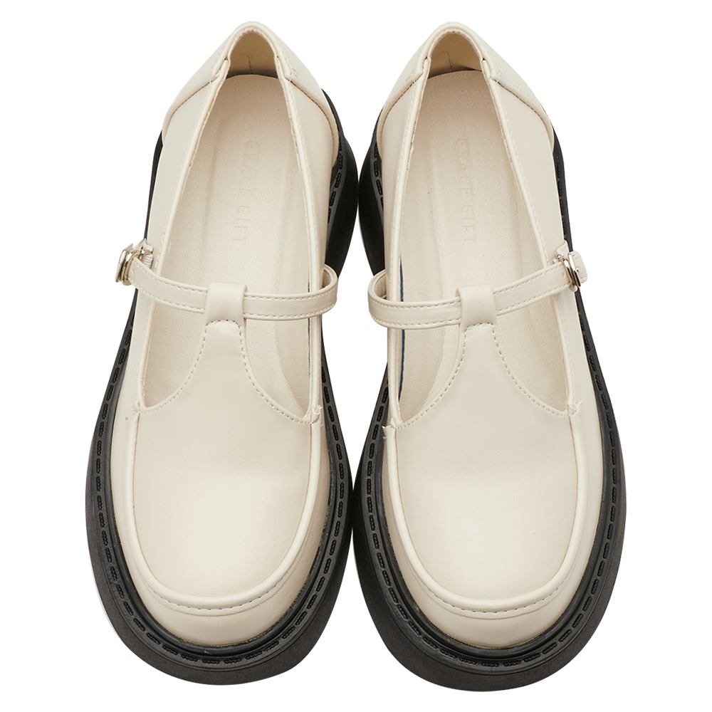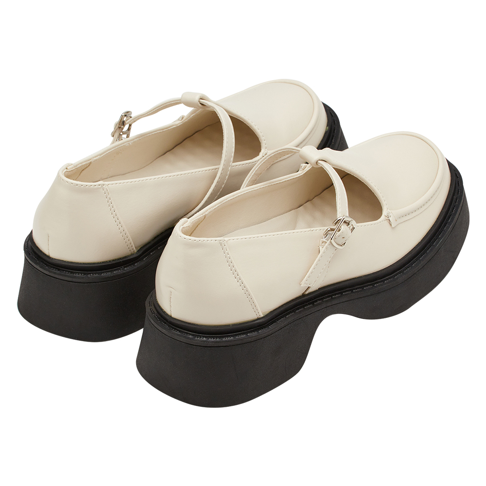 復古率性T字簍空厚底瑪莉珍鞋 米白