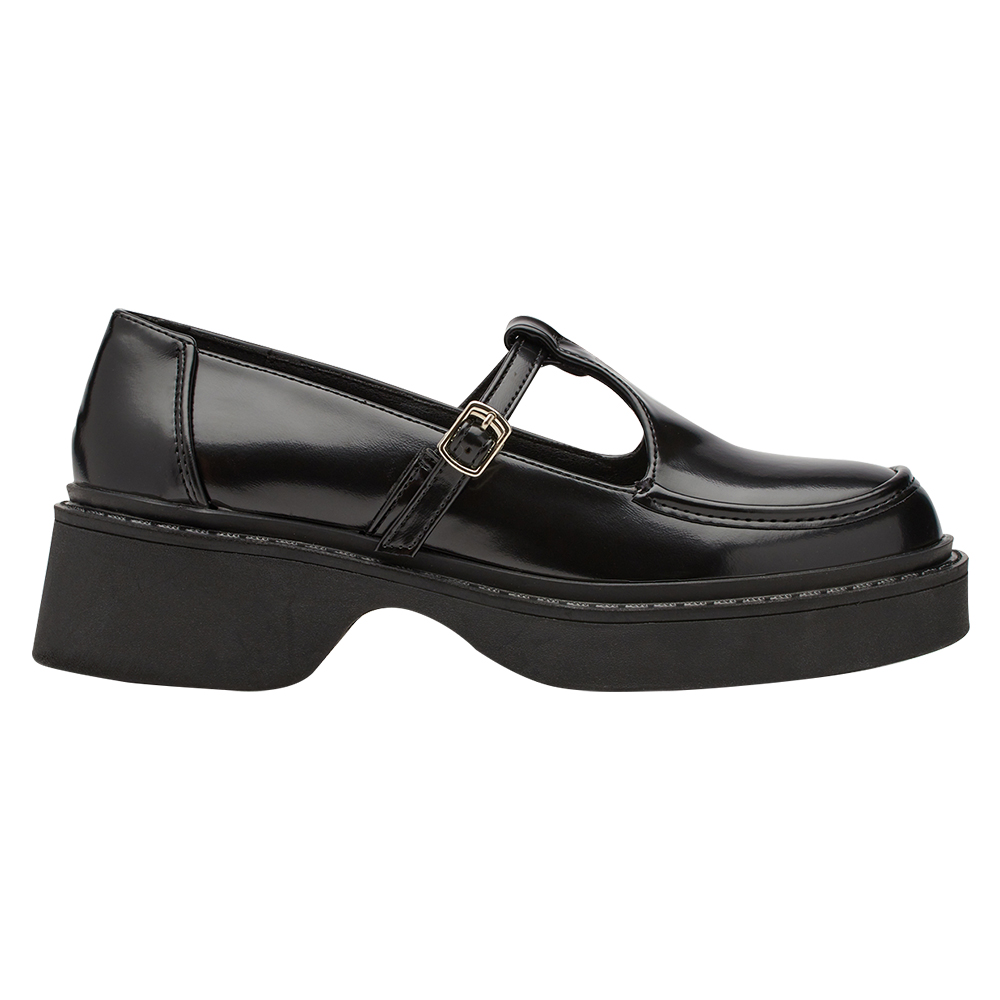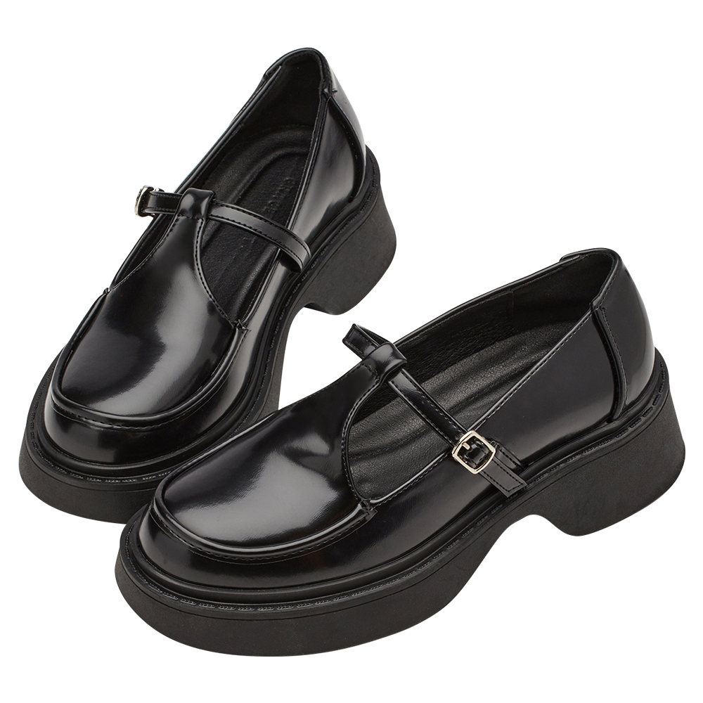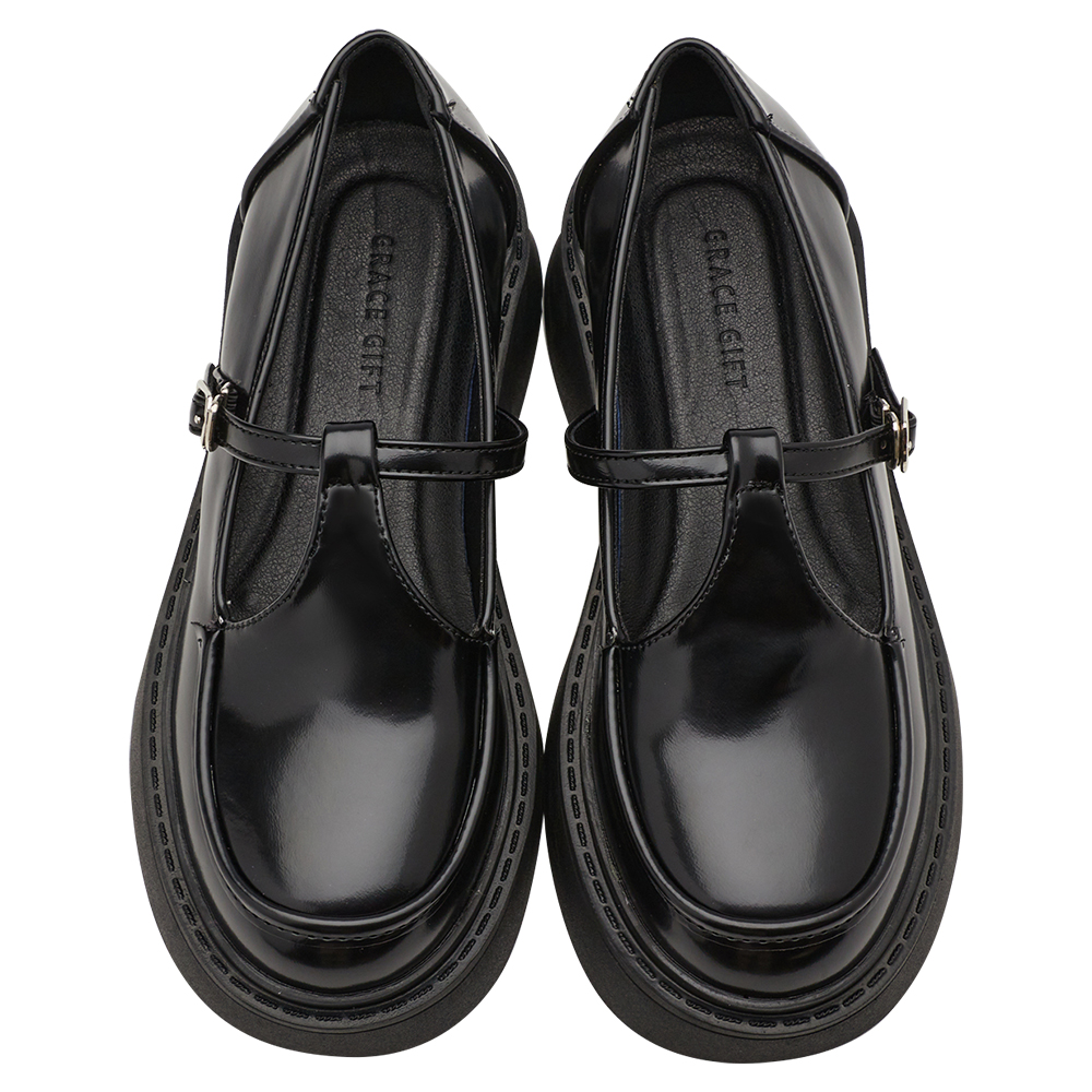 復古率性T字簍空厚底瑪莉珍鞋 黑漆