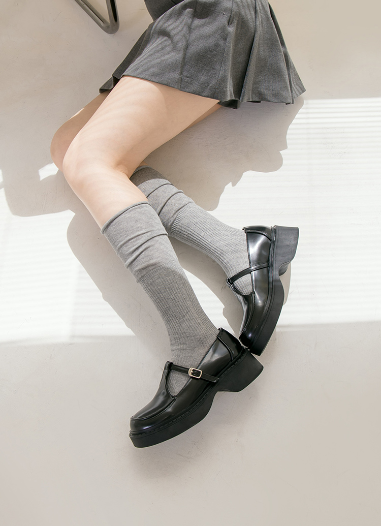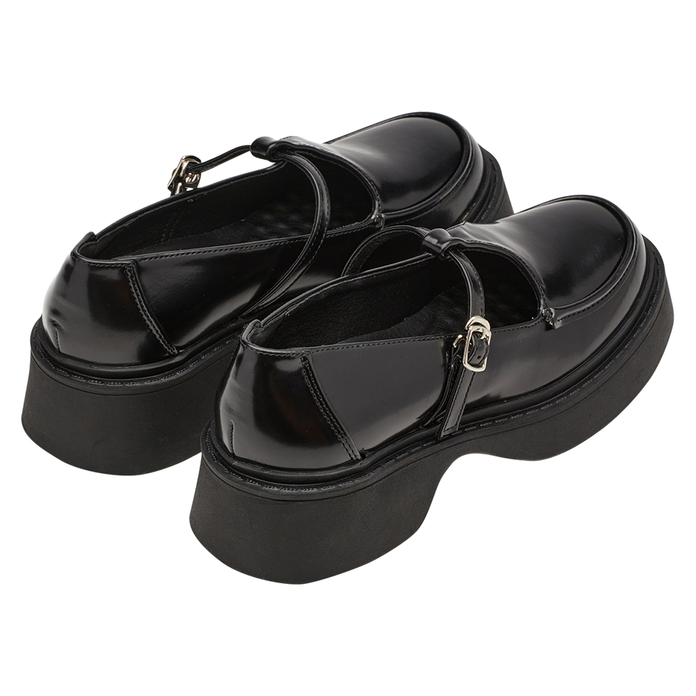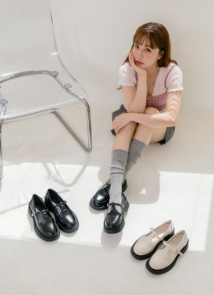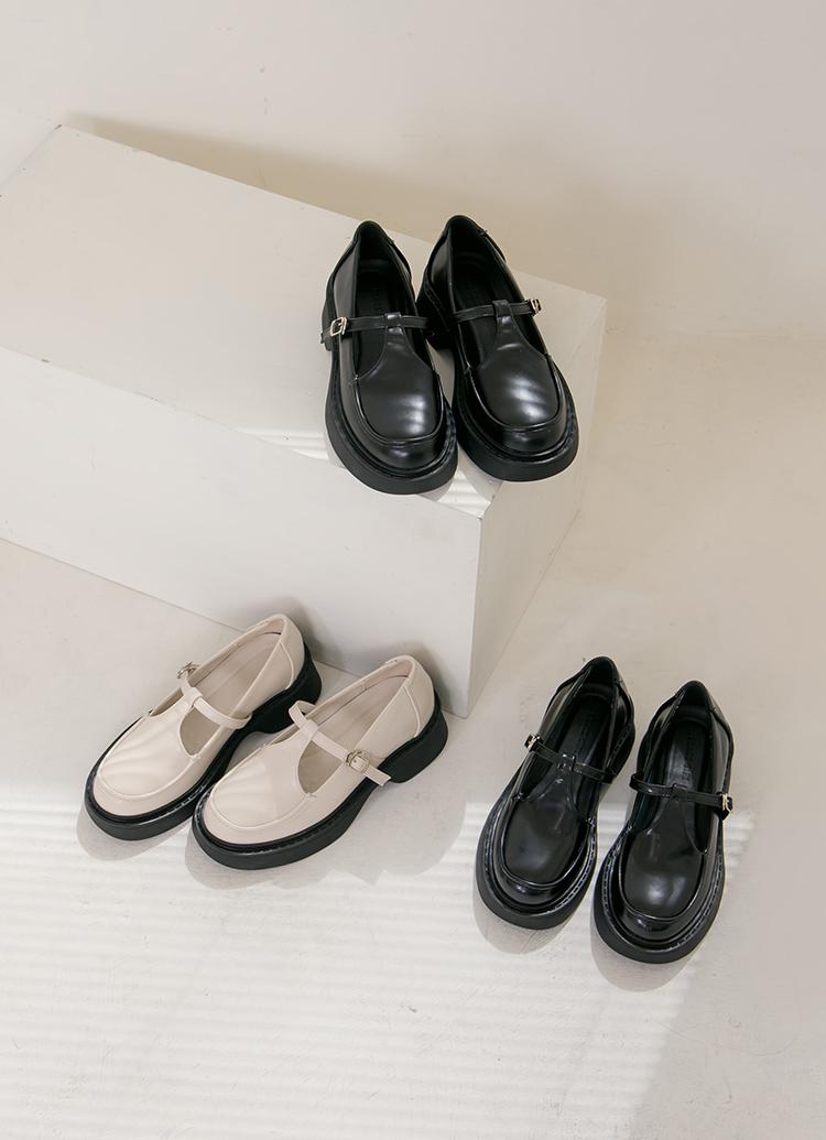 復古率性T字簍空厚底瑪莉珍鞋 黑漆