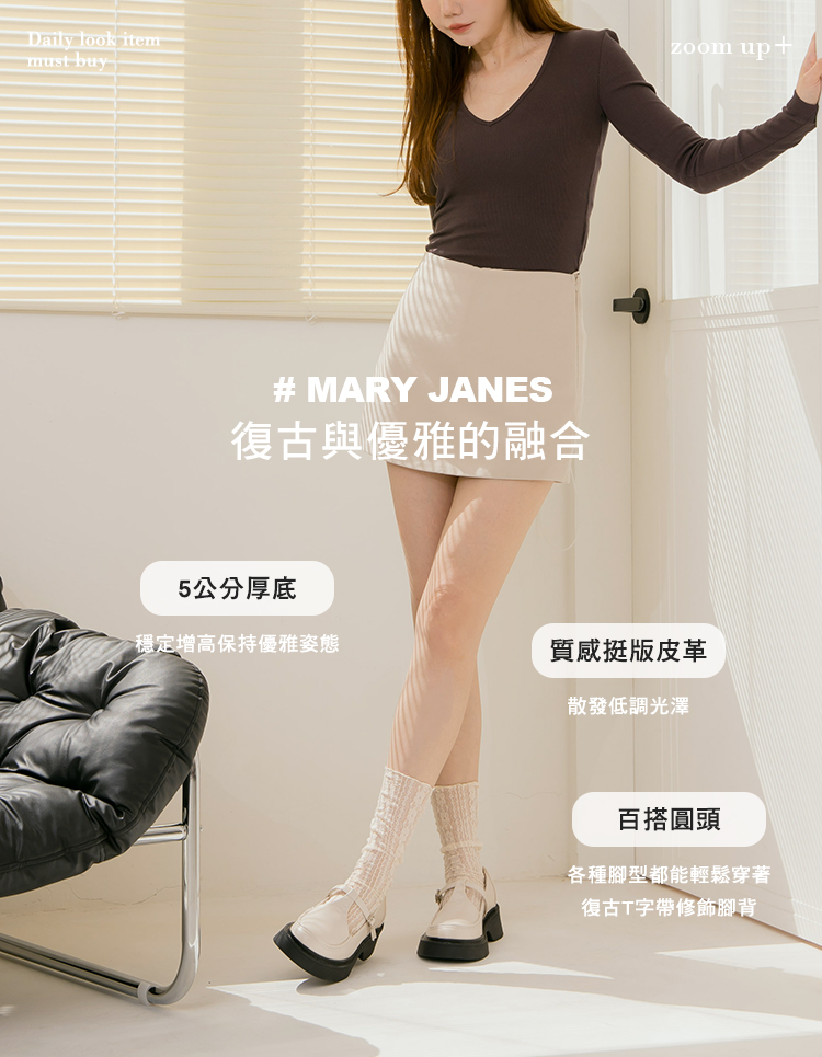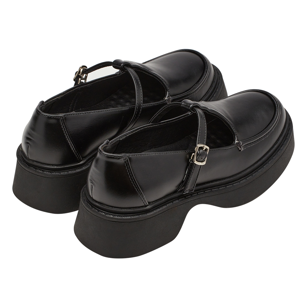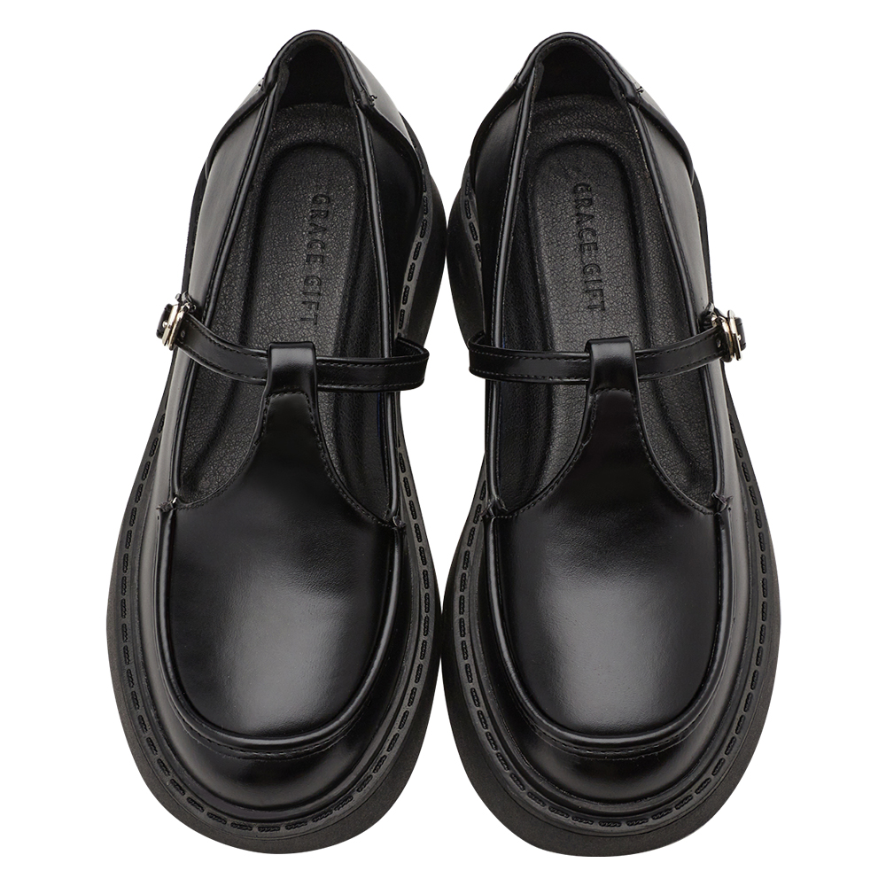 復古率性T字簍空厚底瑪莉珍鞋 黑