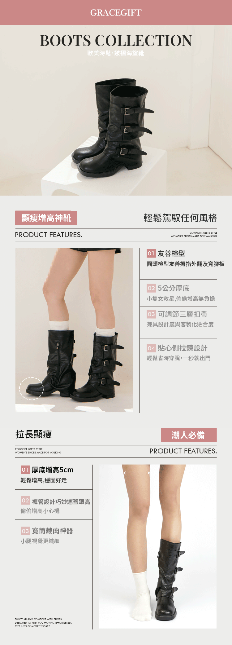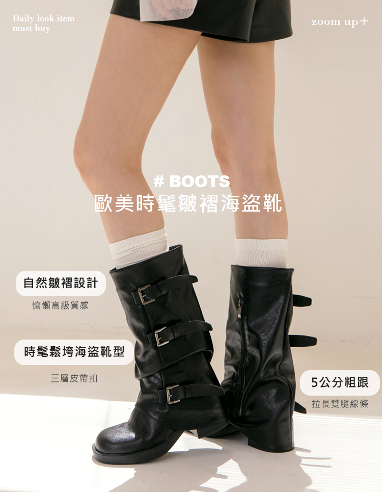 立體皺摺靴筒打造自然曲線,修飾小腿肉肉