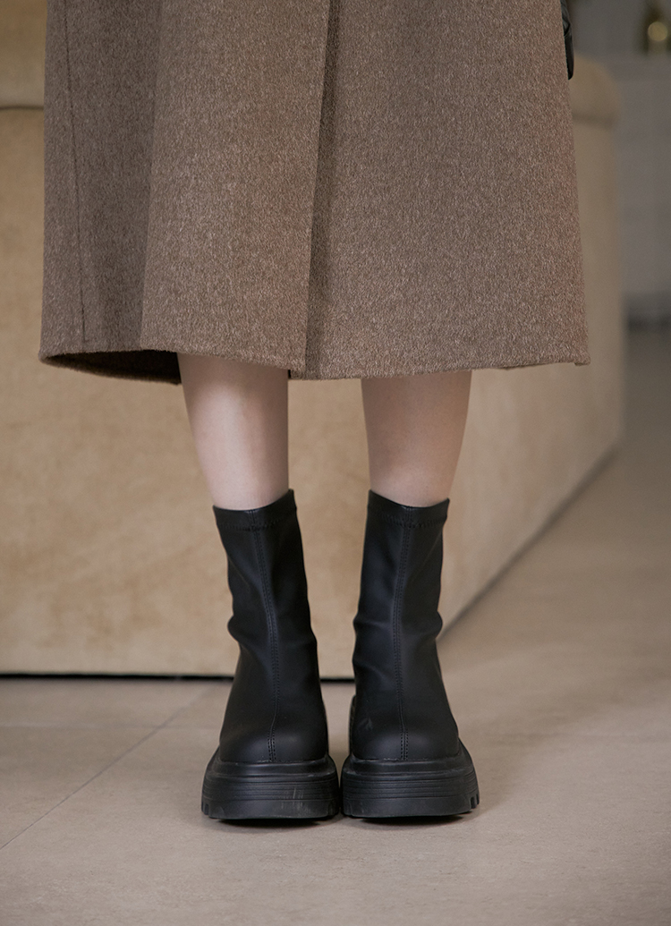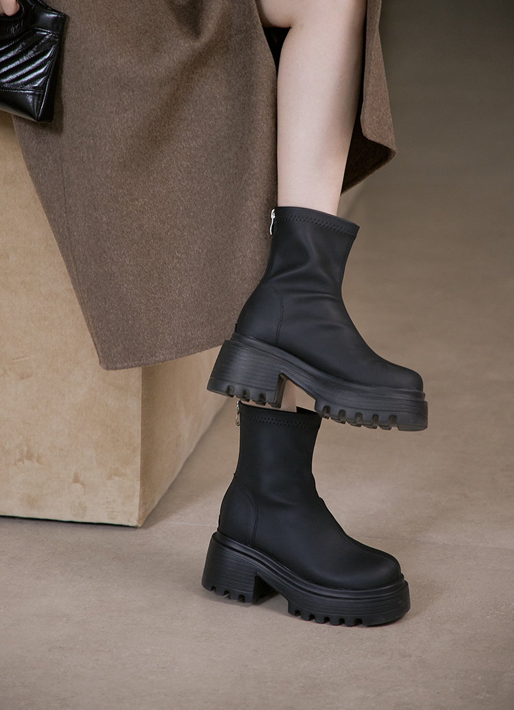 氣場長腿內增高輕量鋸齒厚底短靴 黑
