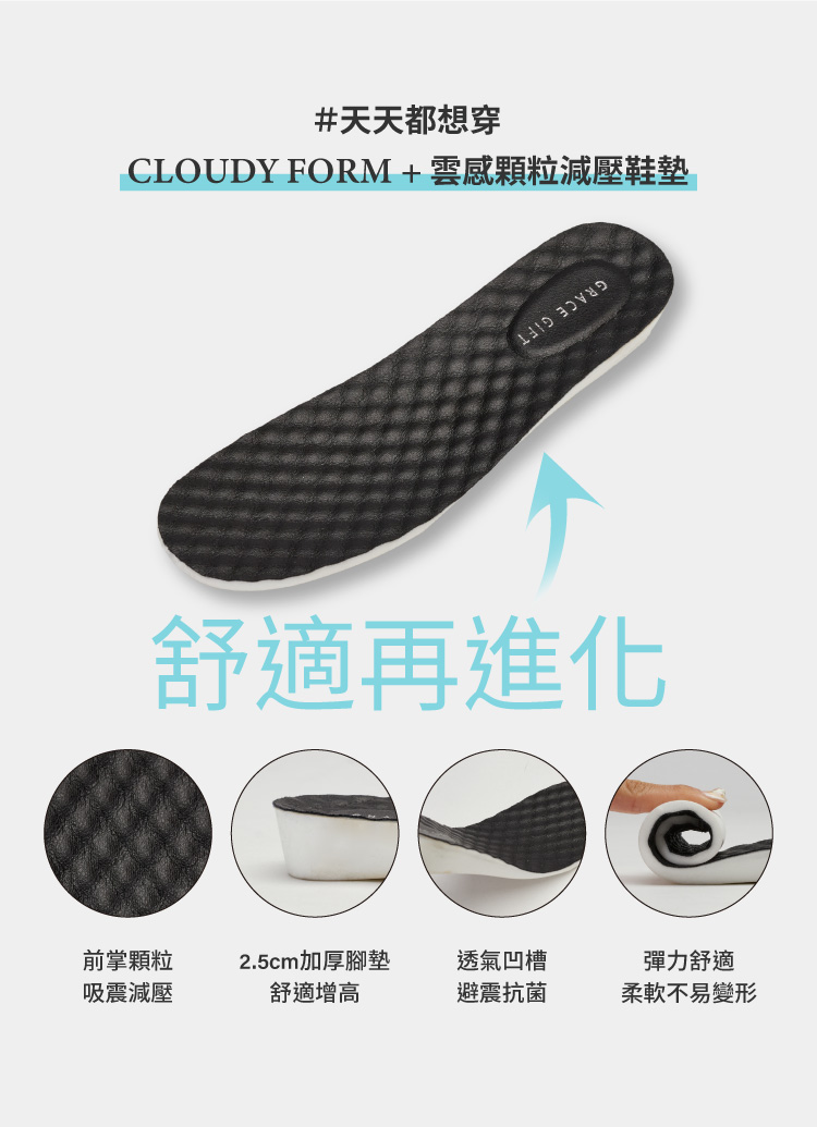 搭配雲感顆粒減壓鞋墊,行走間也能釋放疲勞