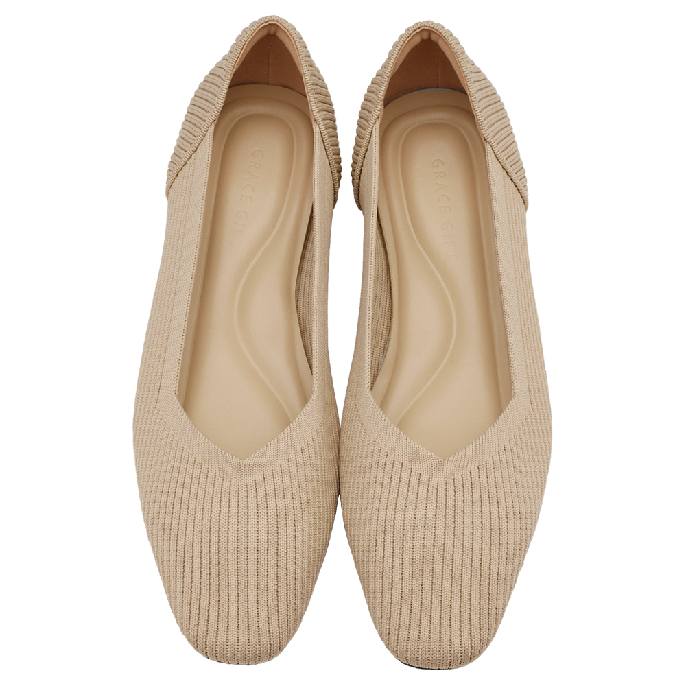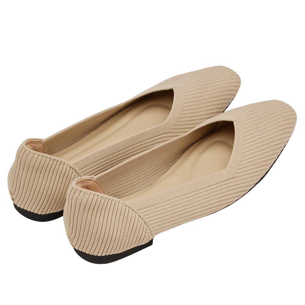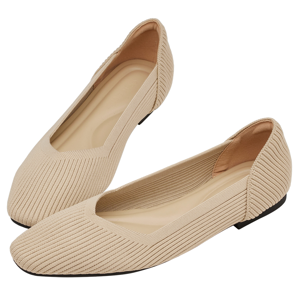 零著感方頭柔織軟墊平底娃娃鞋 杏