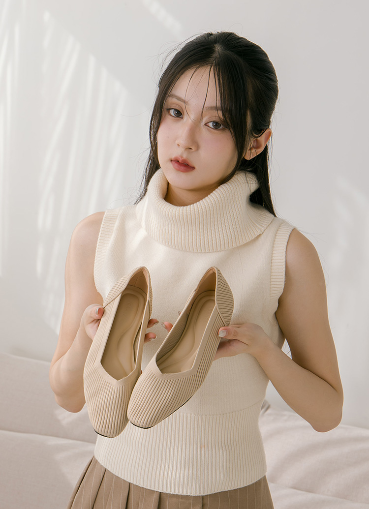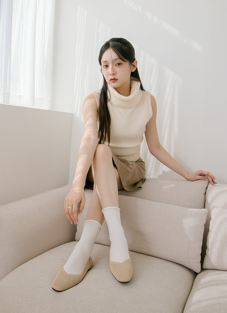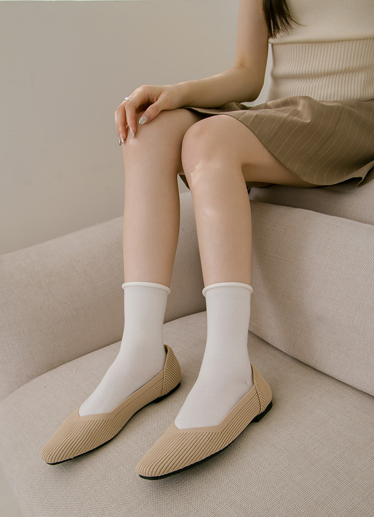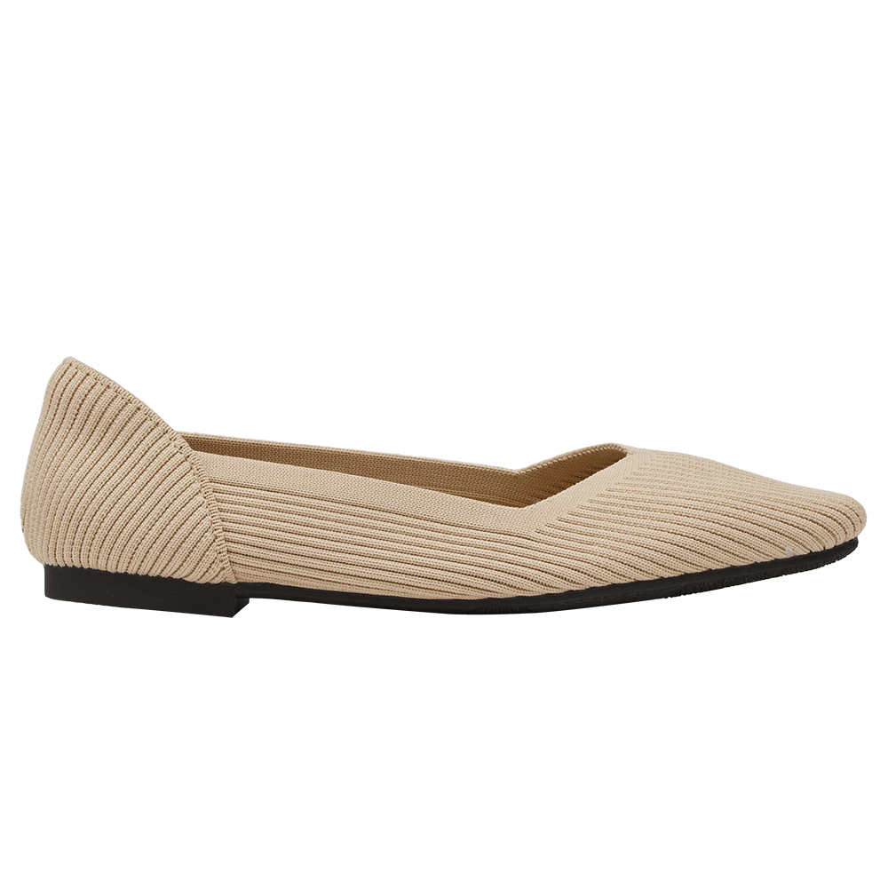 零著感方頭柔織軟墊平底娃娃鞋 杏