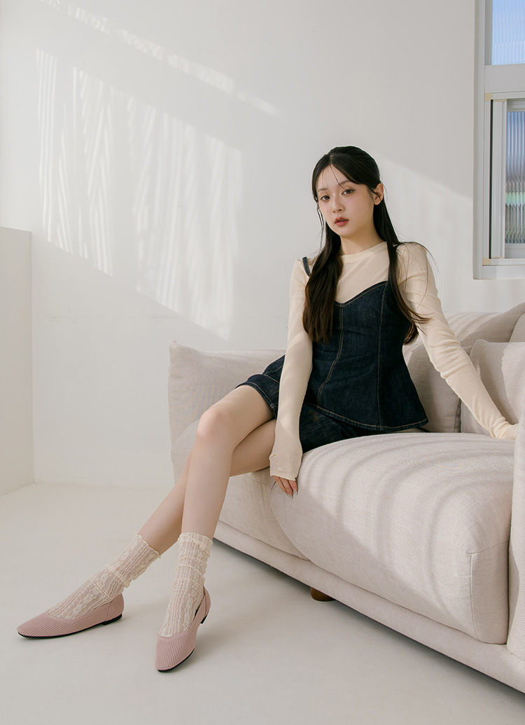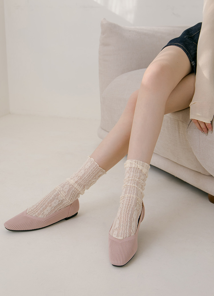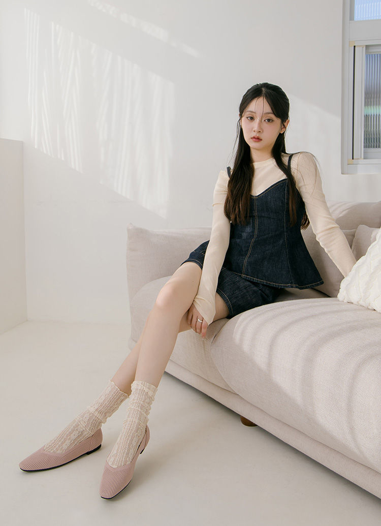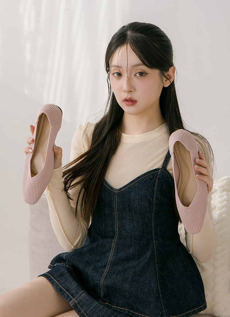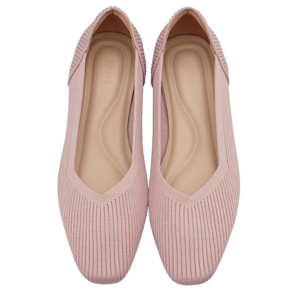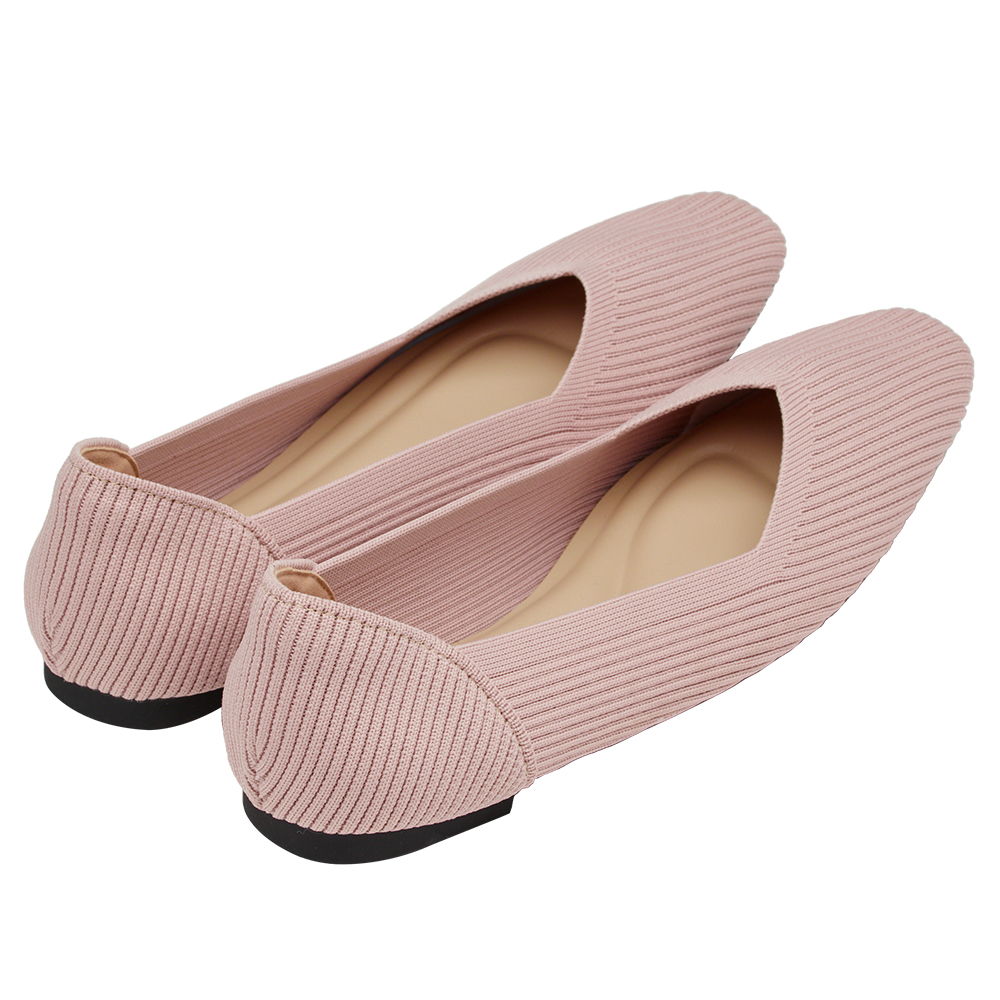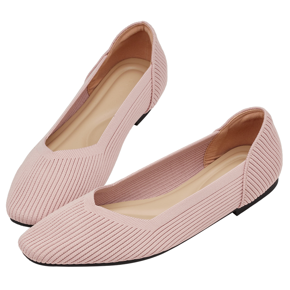 零著感方頭柔織軟墊平底娃娃鞋 粉紅