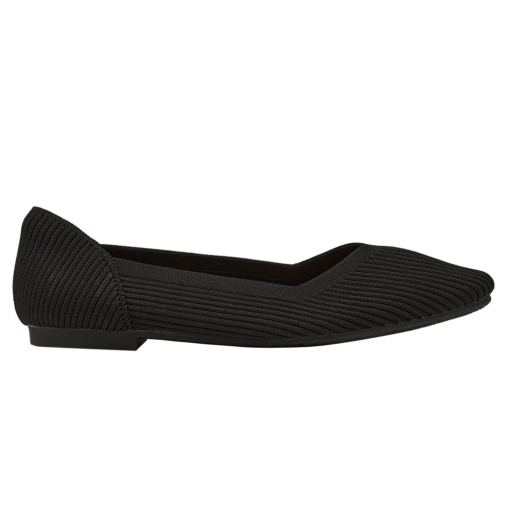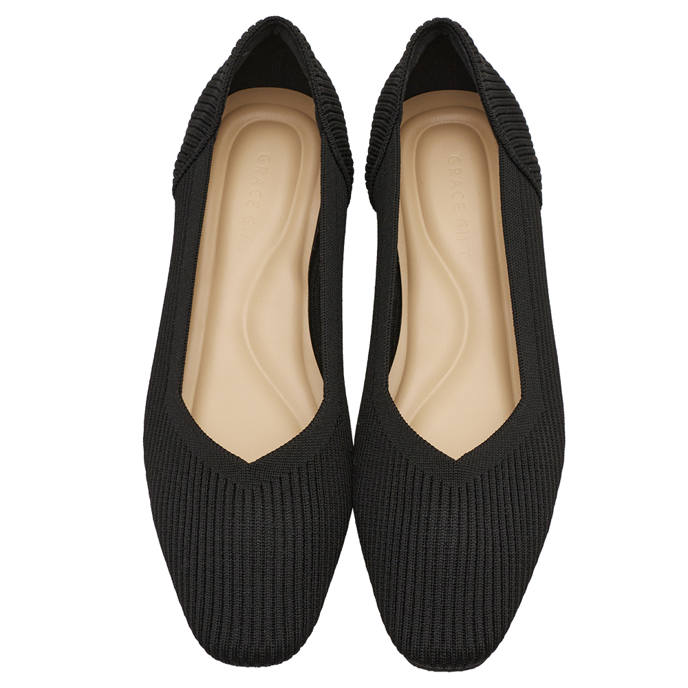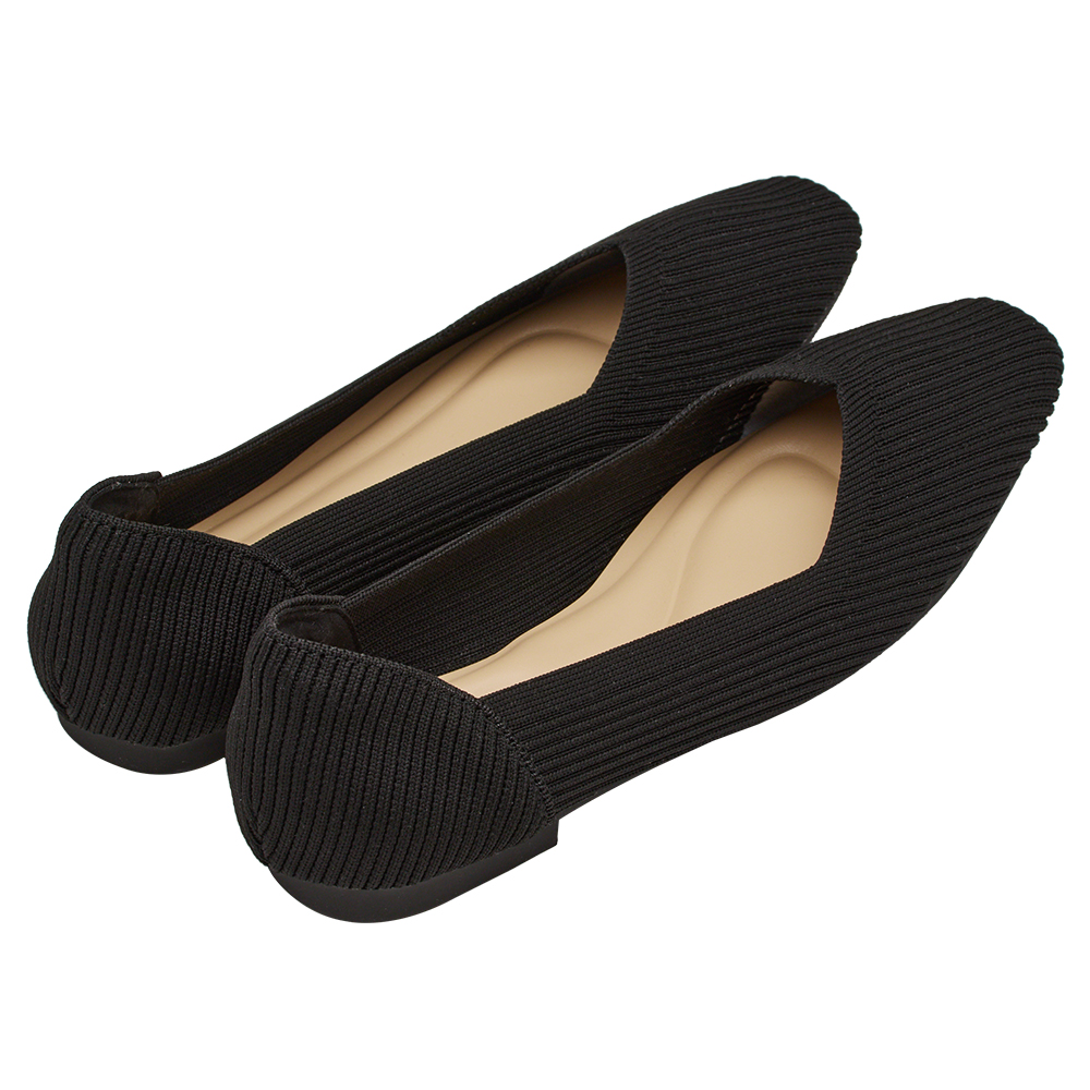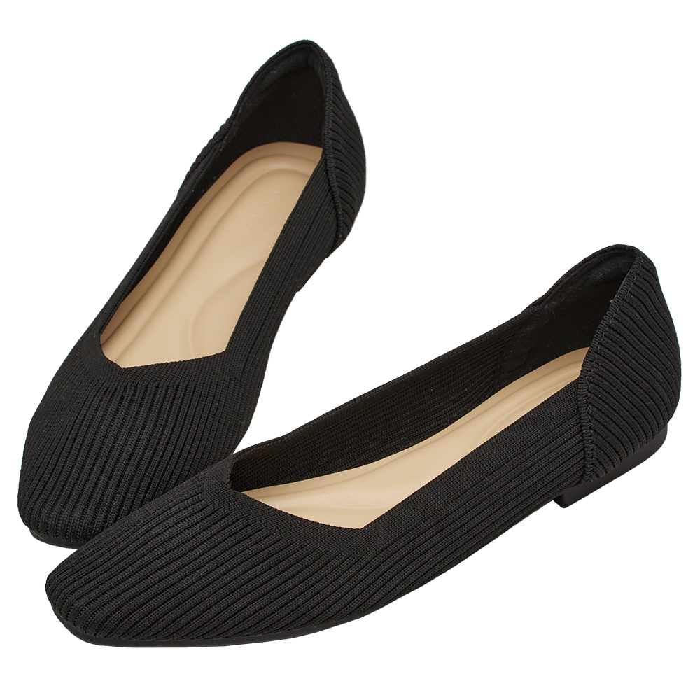 零著感方頭柔織軟墊平底娃娃鞋 黑