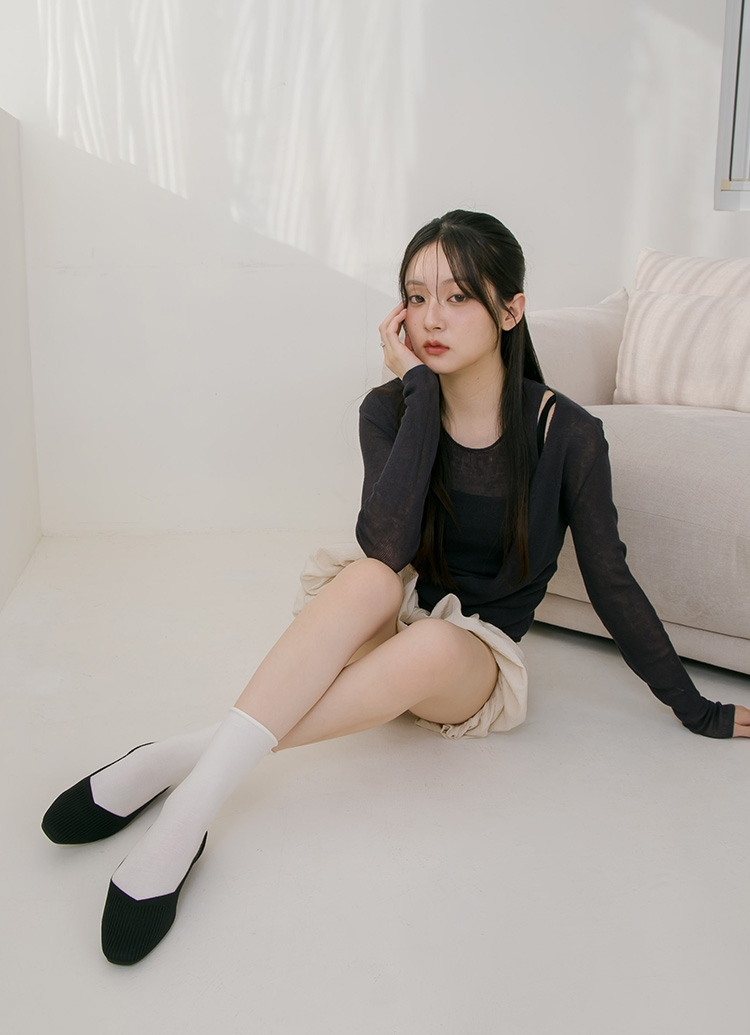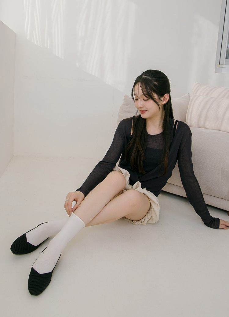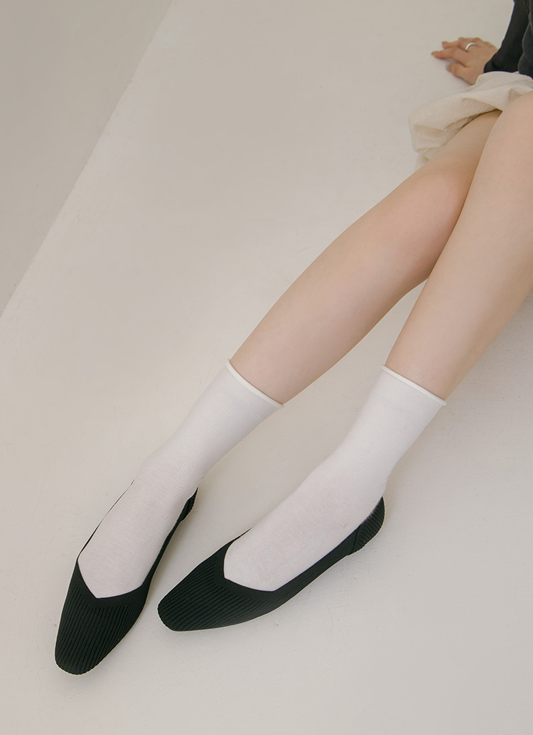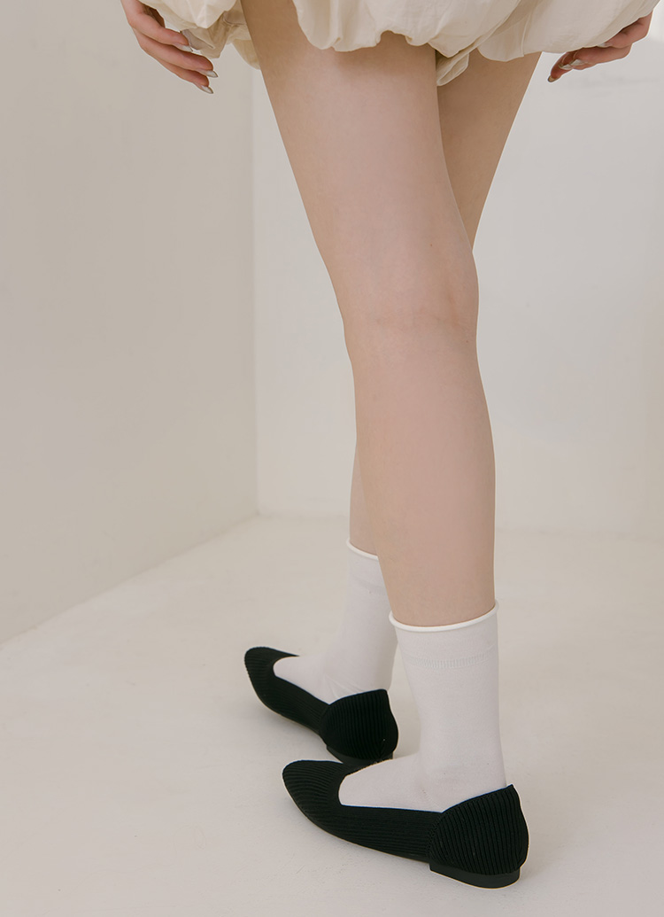 零著感方頭柔織軟墊平底娃娃鞋 黑