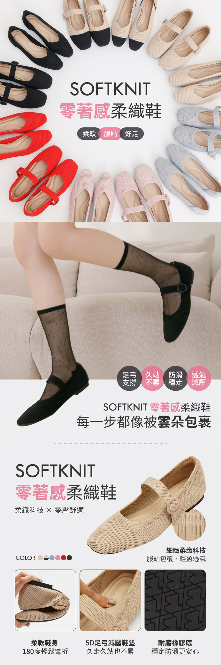 1cm好走平底,搭載5D立體軟墊