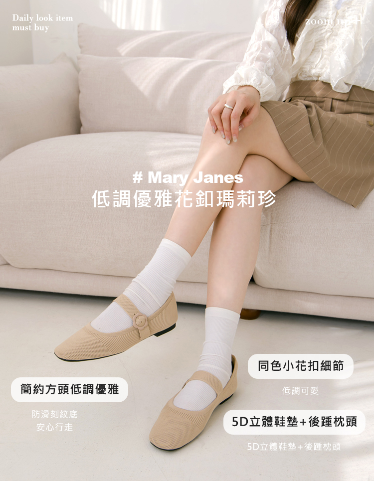 首頁 > 最新商品 > 尖如選品 >零著感方頭小花釦柔織軟墊平底瑪莉珍鞋 杏