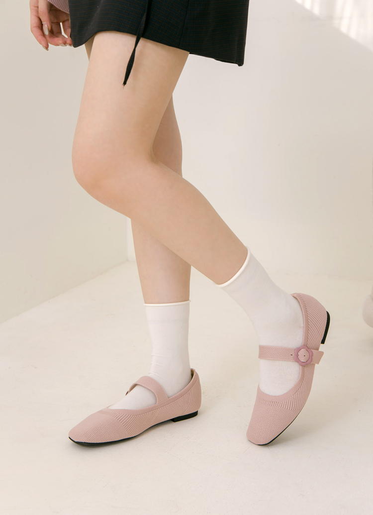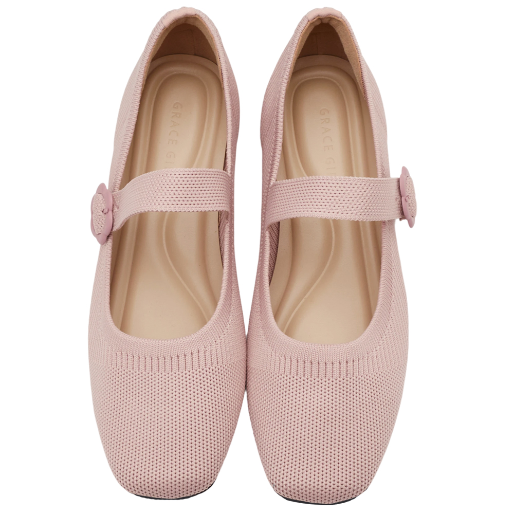 零著感方頭小花釦柔織軟墊平底瑪莉珍鞋 粉紅
