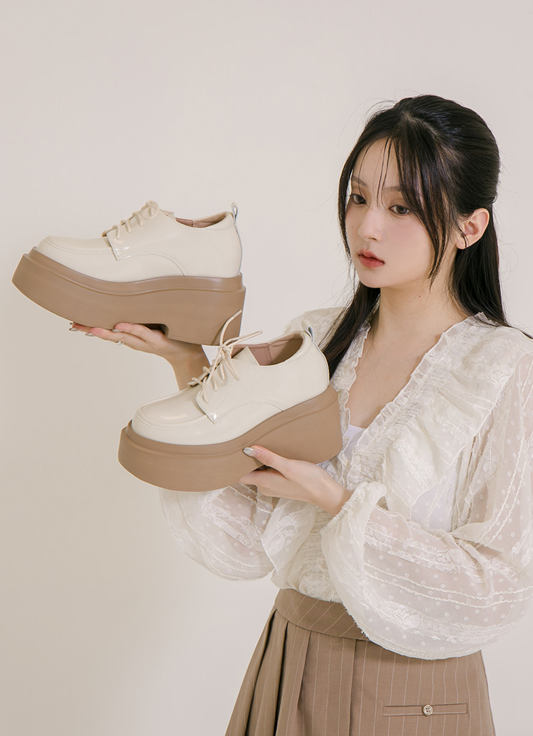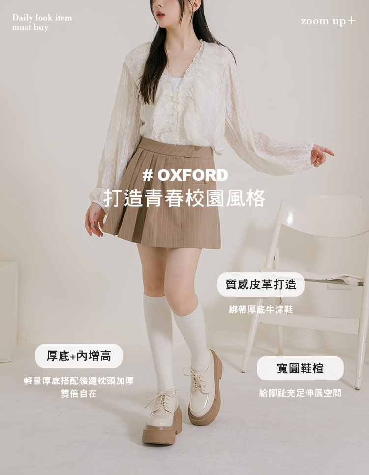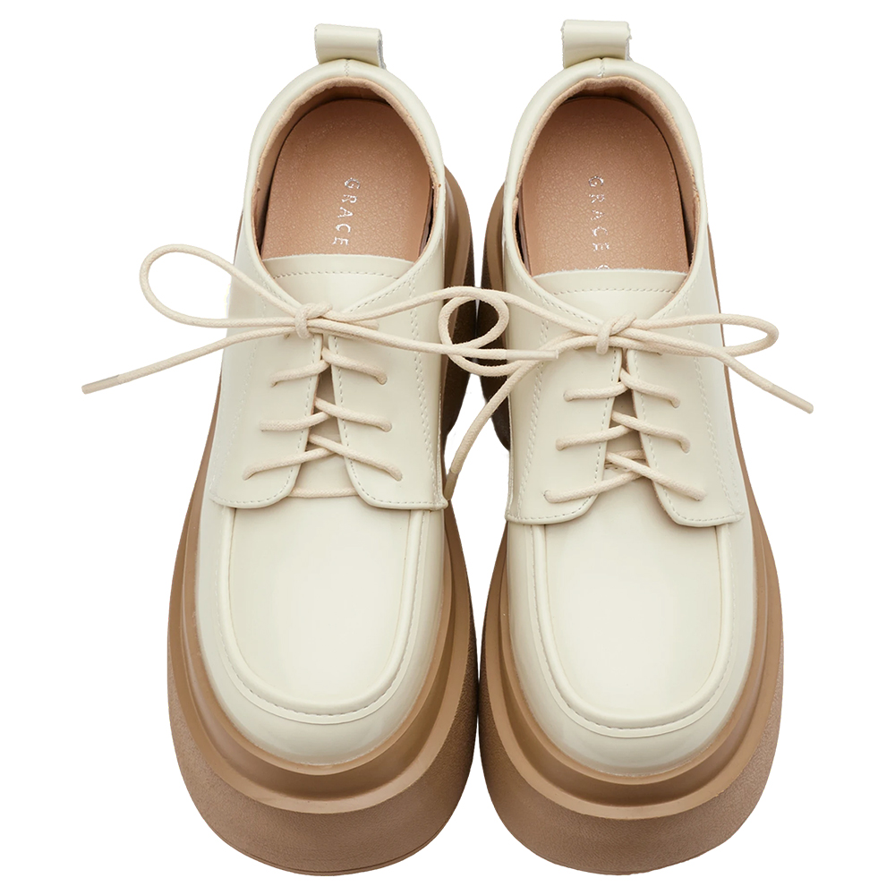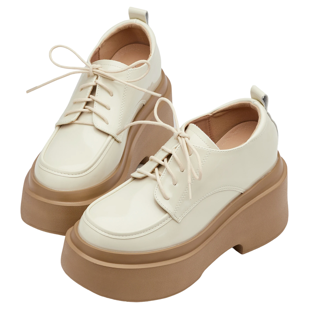 摩登比例內增高輕量厚底牛津鞋 杏