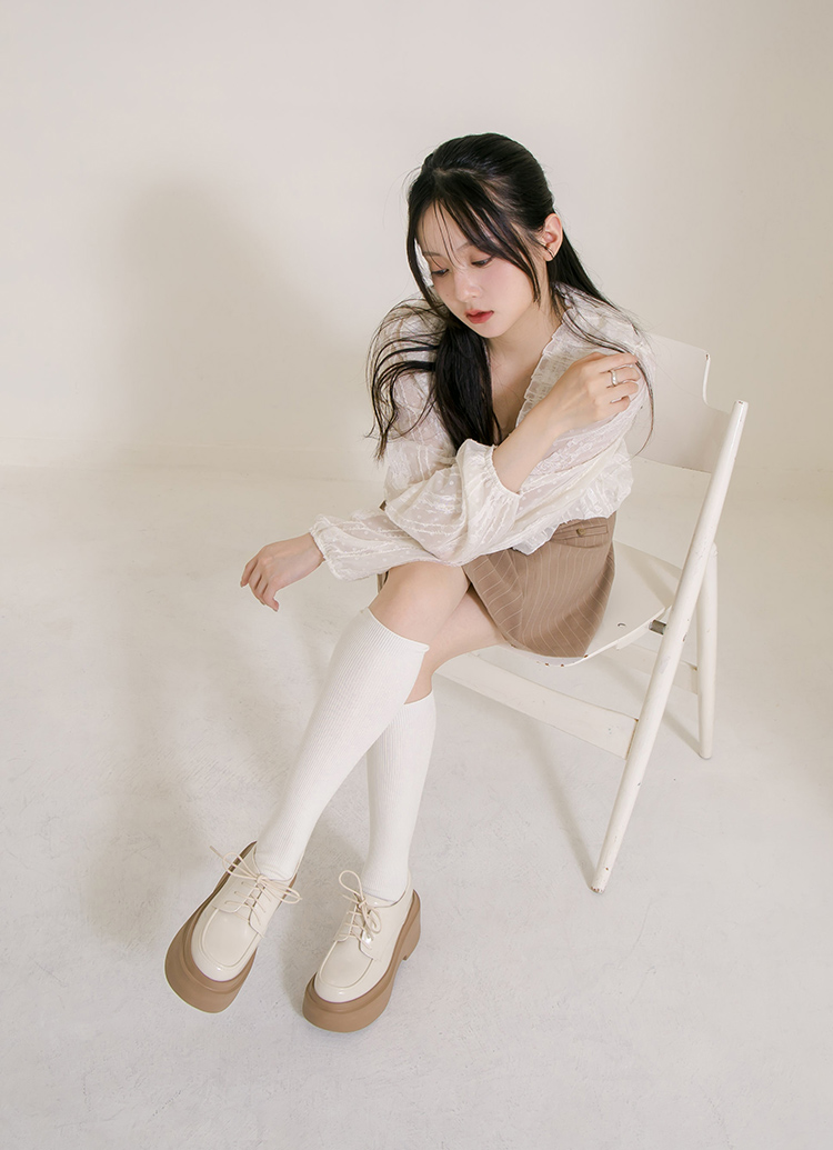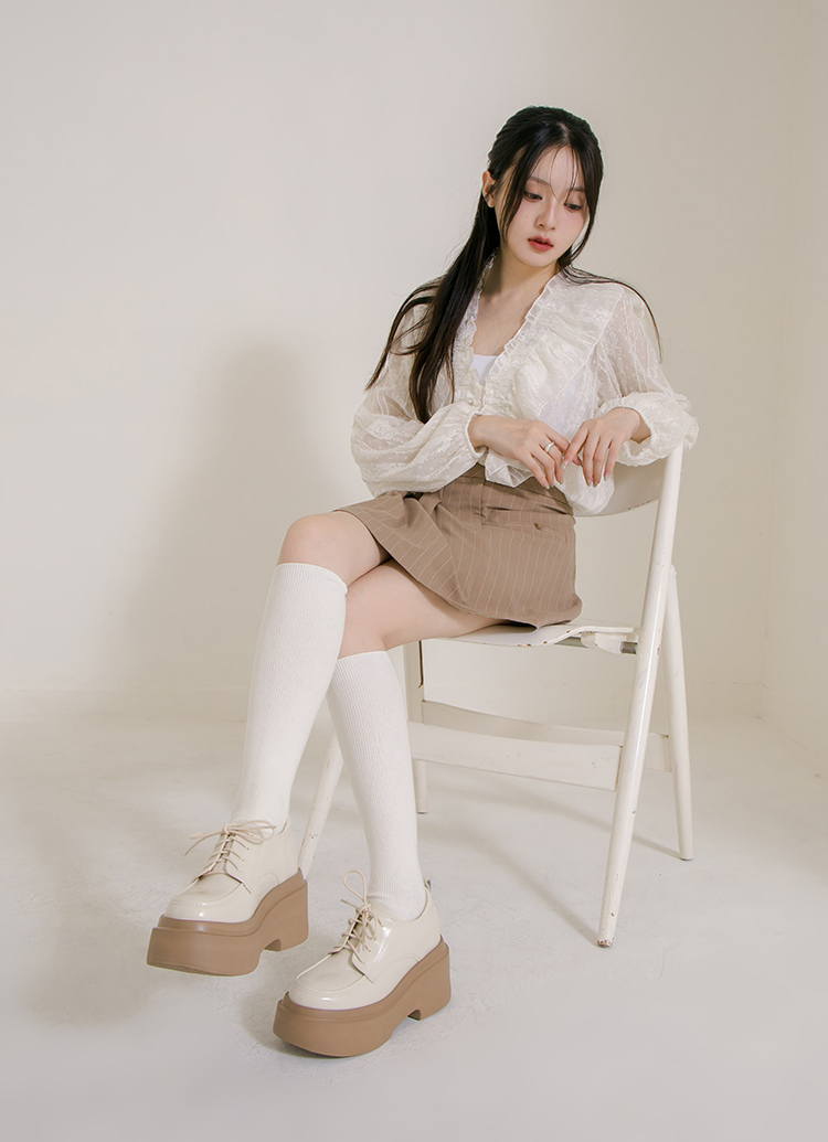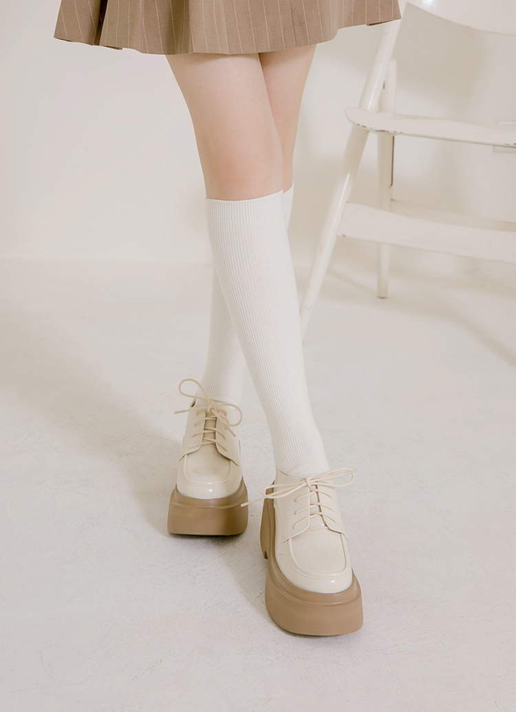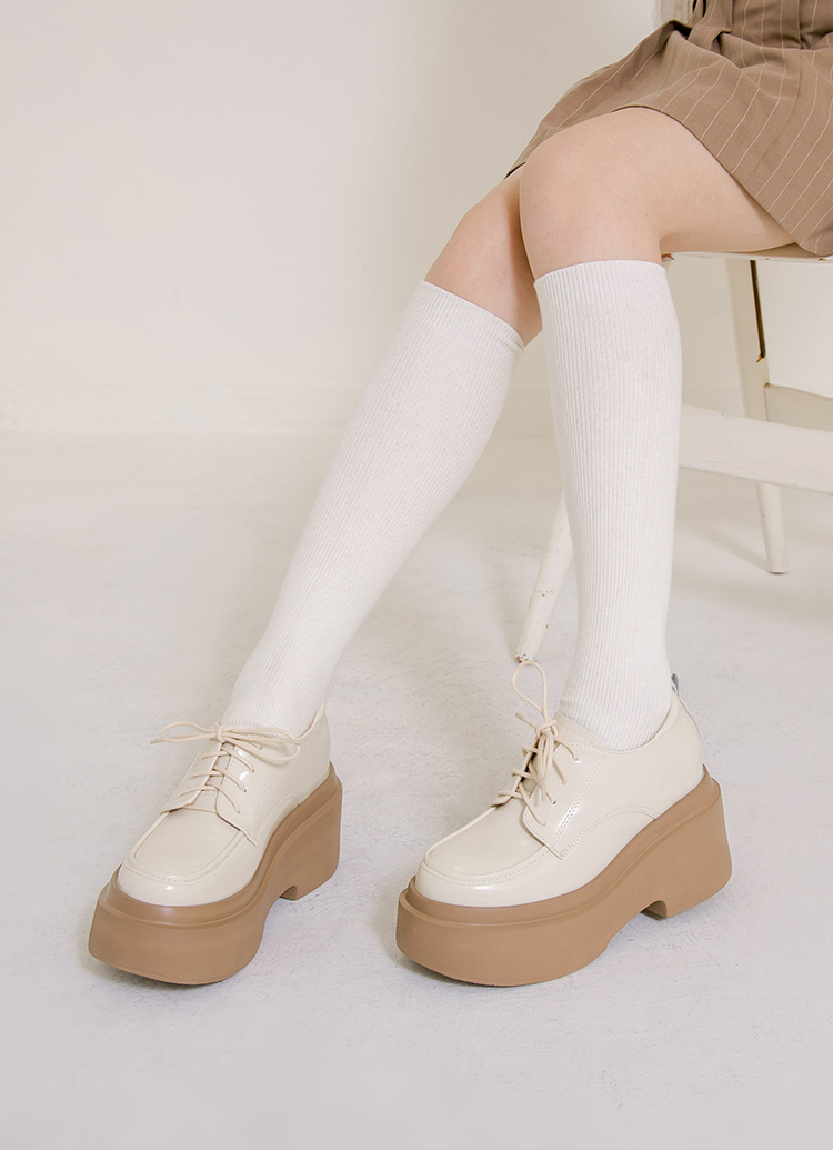 摩登比例內增高輕量厚底牛津鞋 杏