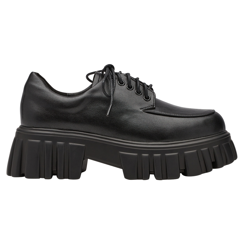 時尚靈感輕量鋸齒厚底牛津鞋 黑