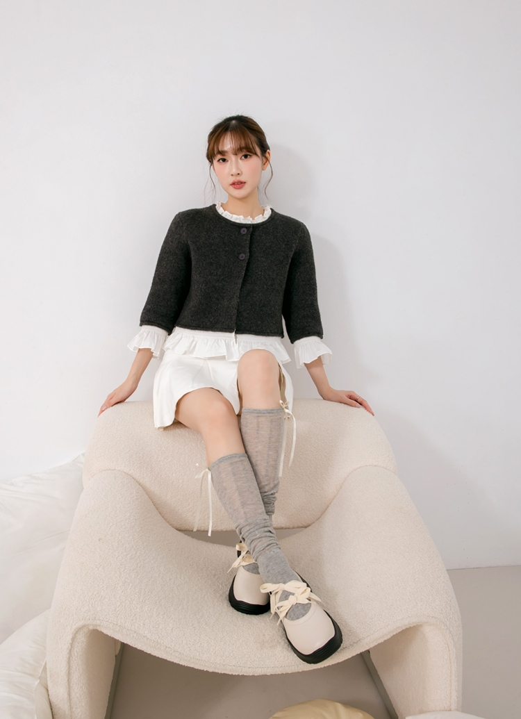 小公主撞色緞帶小腿堆堆襪 灰 小公主撞色緞帶小腿堆堆襪 灰