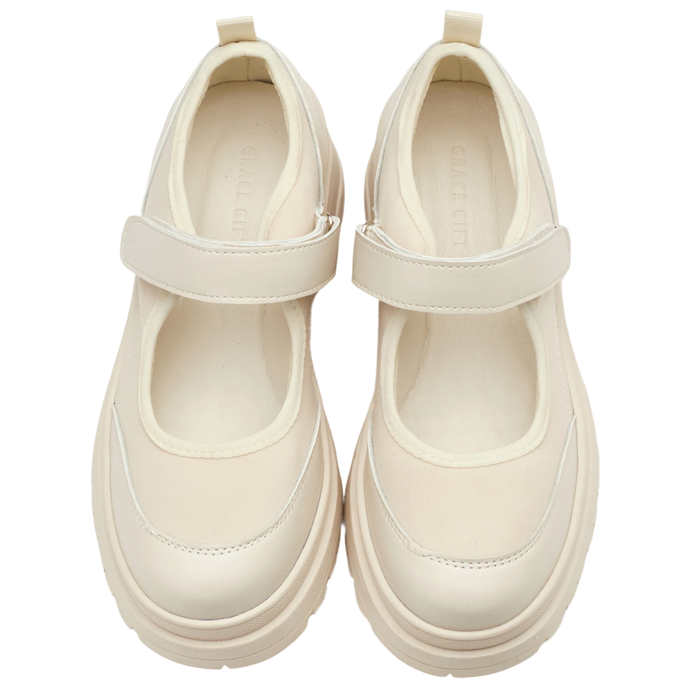 輕運動風拼接魔鬼氈瑪莉珍運動鞋 米白