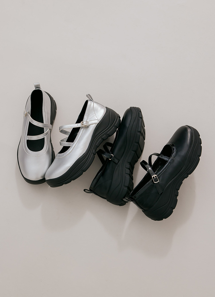 時髦甜感交叉細帶輕量瑪莉珍運動鞋 黑
