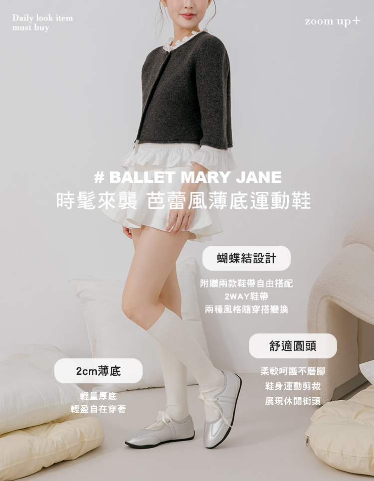 2WAY鞋帶自由切換,機能與芭蕾風格兼具