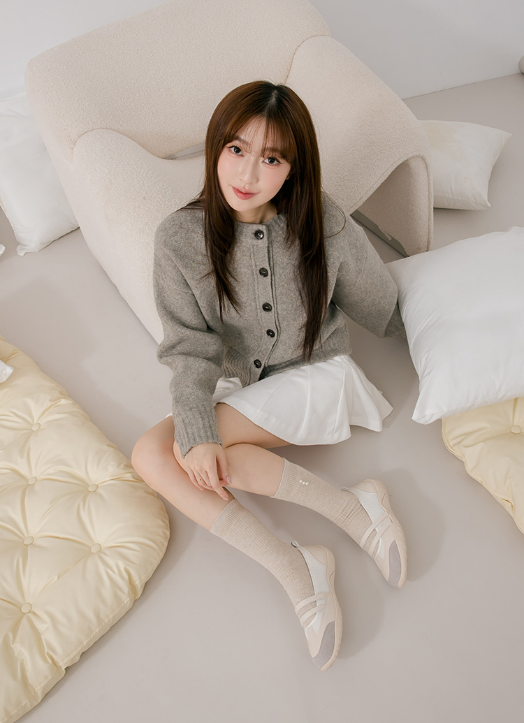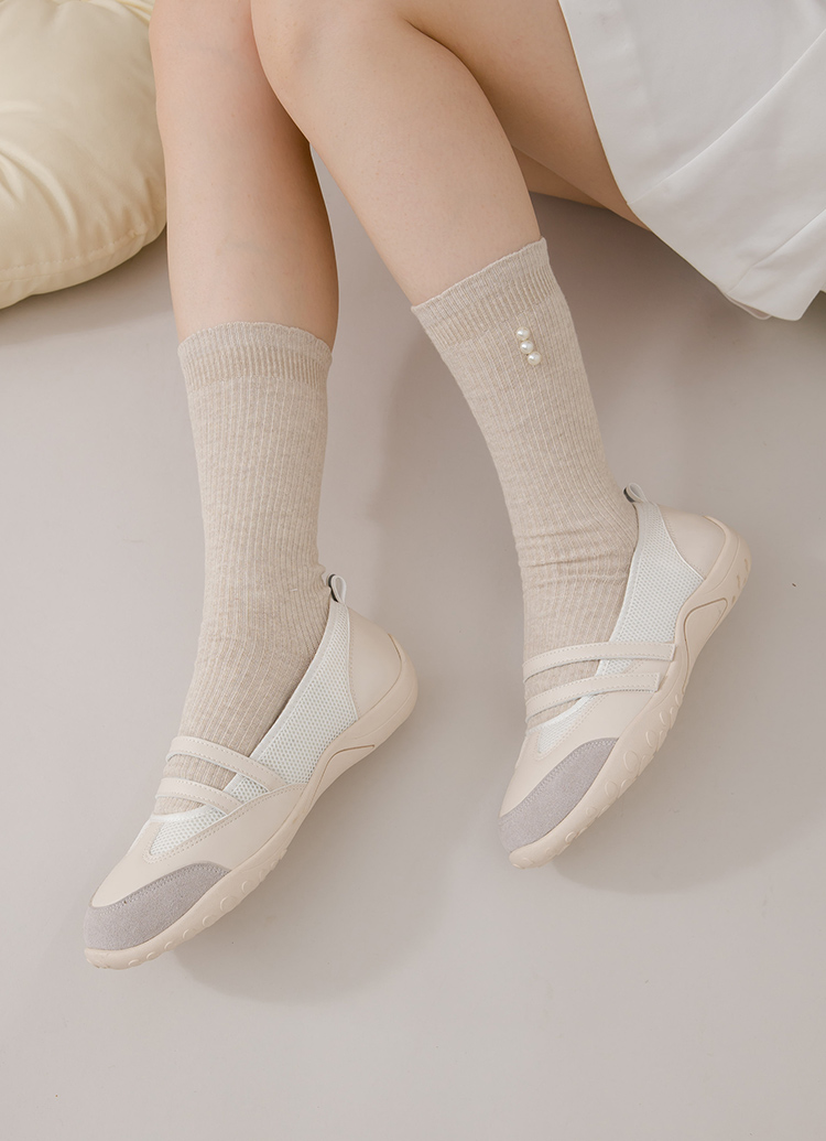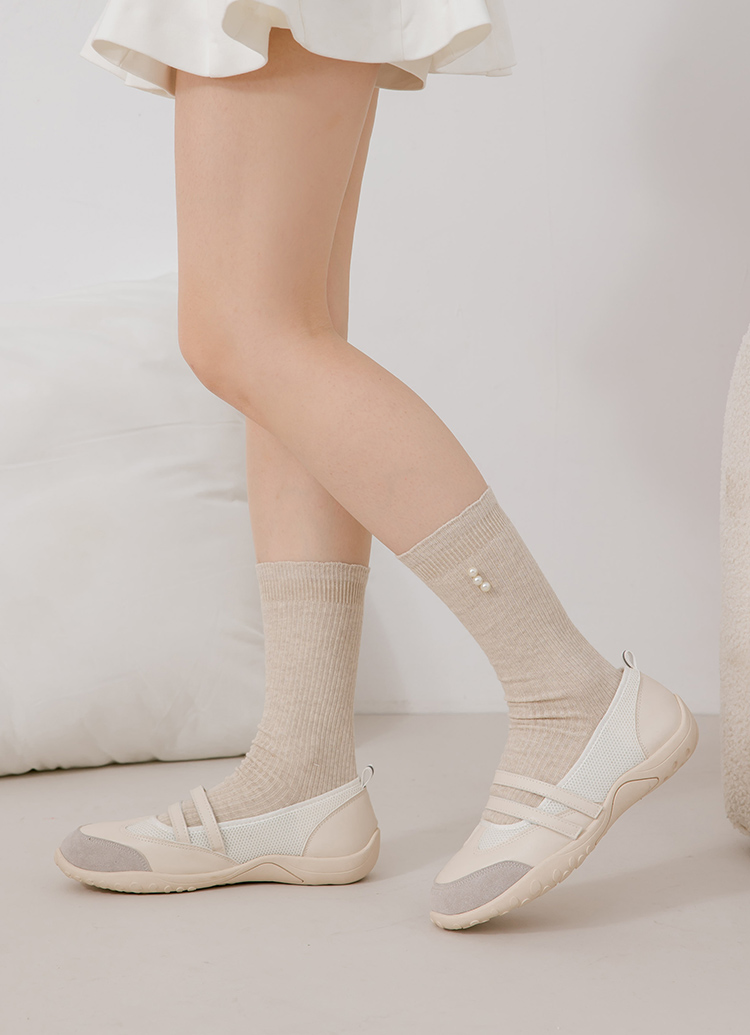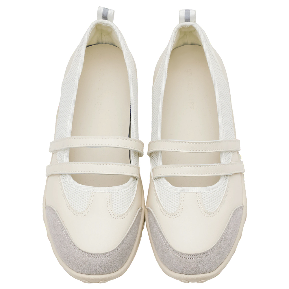 活力女孩魔鬼氈機能芭蕾舞運動鞋 米白