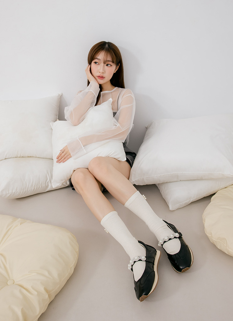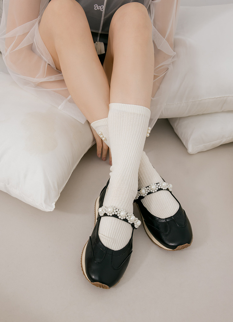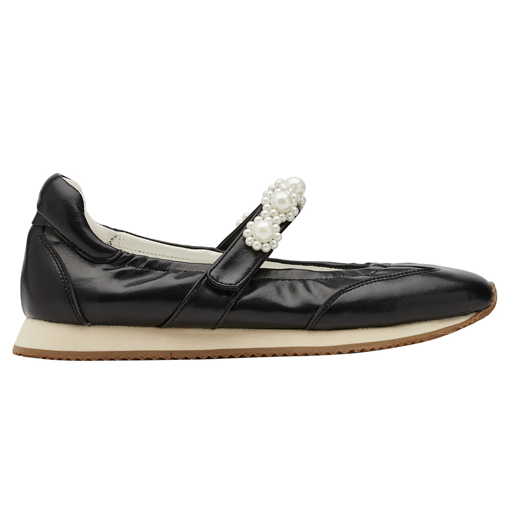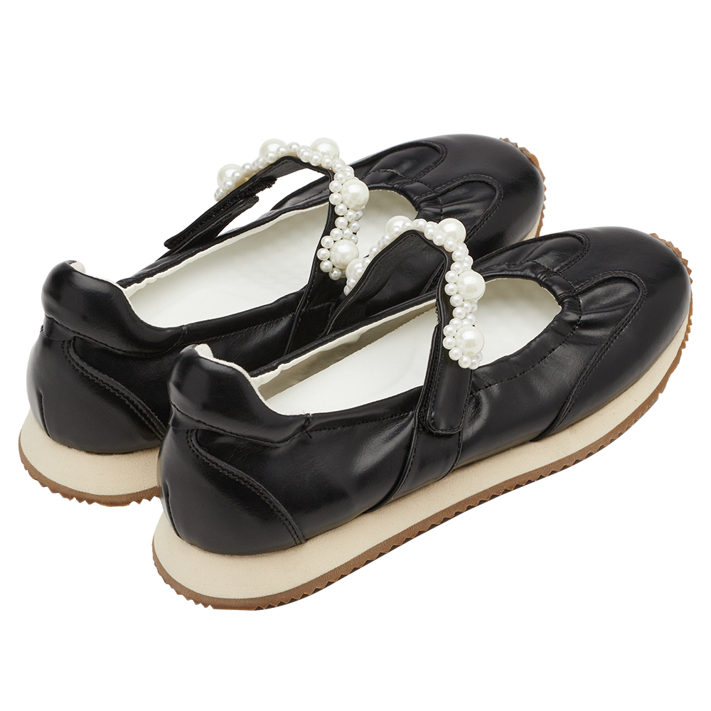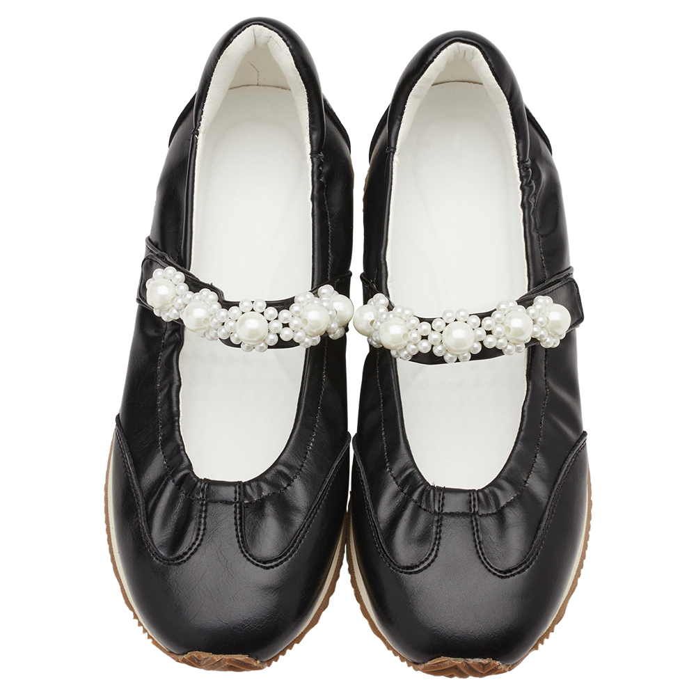 首頁 > 女鞋 > 芭蕾舞鞋 > 芭蕾舞運動鞋 >珍珠小花條帶魔鬼氈芭蕾舞瑪莉珍鞋 黑