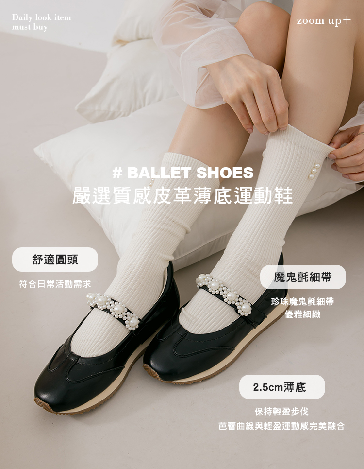 圓潤鞋楦及2.5cm運動薄底,輕盈又具時尚感