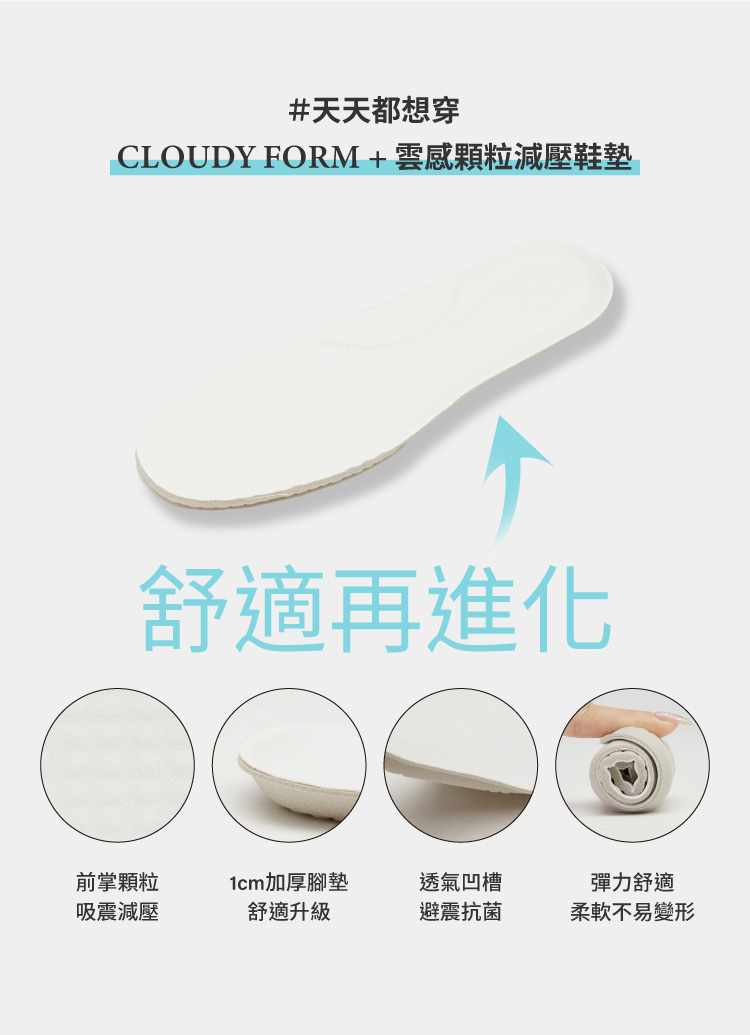 雲感顆粒鞋墊貼合足型,腳感柔軟升級
