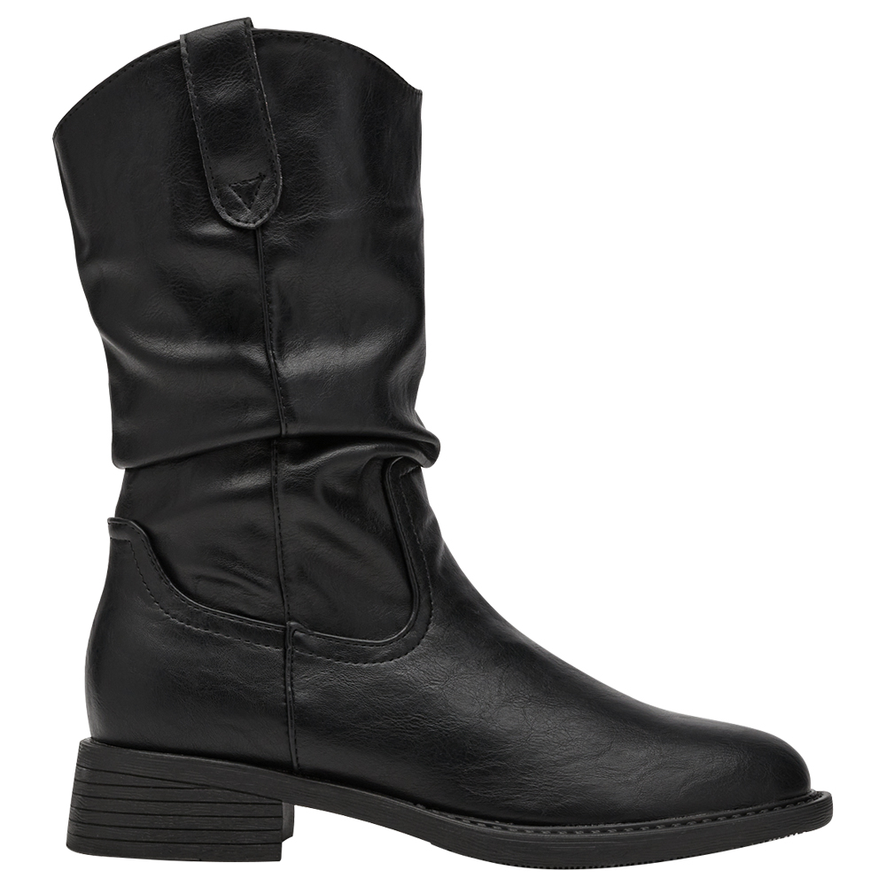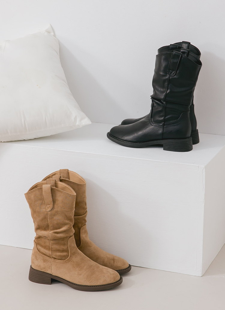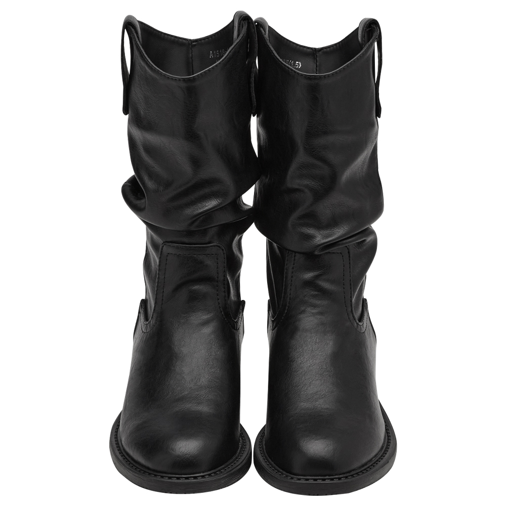 秋日復古皮革V口抓皺西部堆堆靴 黑
